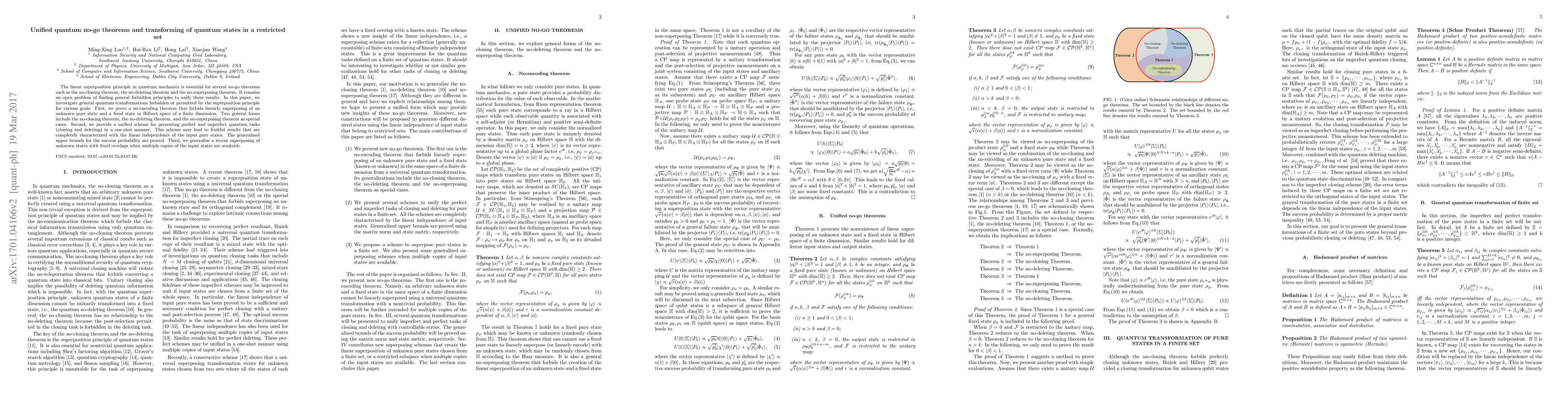 The linear superposition principle in quantum mechanics is essential for several no-go theorems such as the no-cloning theorem, the no-deleting theorem and the no-superposing theorem. It remains an open problem of finding general forbidden principles to unify these results. In this paper, we investigate general quantum transformations forbidden or permitted by the superposition principle for various goals. First, we prove a no-encoding theorem that forbids linearly superposing of an unknown pure state and a fixed state in Hilbert space of finite dimension. Two general forms include the no-cloning theorem, the no-deleting theorem, and the no-superposing theorem as special cases. Second, we provide a unified scheme for presenting perfect and imperfect quantum tasks (cloning and deleting) in a one-shot manner. This scheme may yield to fruitful results that are completely characterized with the linear independence of the input pure states. The generalized upper bounds for the success probability will be proved. Third, we generalize a recent superposing of unknown states with fixed overlaps when multiple copies of the input states are available.
