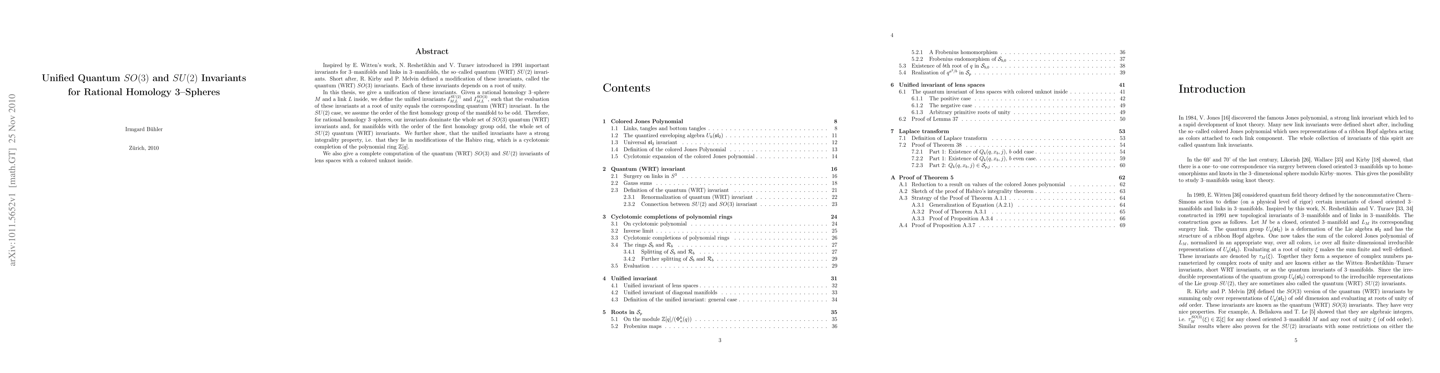 In this thesis, we give a unification of the quantum WRT invariants. Given a rational homology 3-sphere M and a link L inside, we define the unified invariants, such that the evaluation of these invariants at a root of unity equals the corresponding quantum WRT invariant. In the SU(2) case, we assume the order of the first homology group of the manifold to be odd. Therefore, for rational homology 3-spheres, our invariants dominate the whole set of SO(3) quantum WRT invariants and, for manifolds with the order of the first homology group odd, the whole set of SU(2) quantum WRT invariants. We further show, that the unified invariants have a strong integrality property.