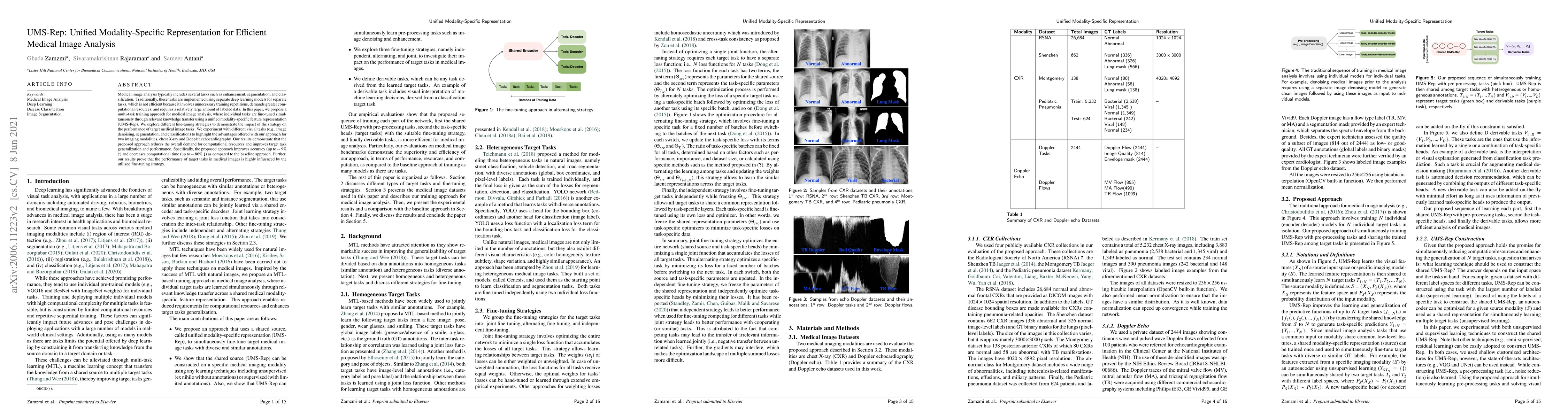This paper proposes a unified representation learning approach for efficient medical image analysis, leveraging multi-task training to reduce computational demands and improve task performance through shared knowledge transfer. The results show significant improvements in efficiency and task generalization across various medical imaging modalities.