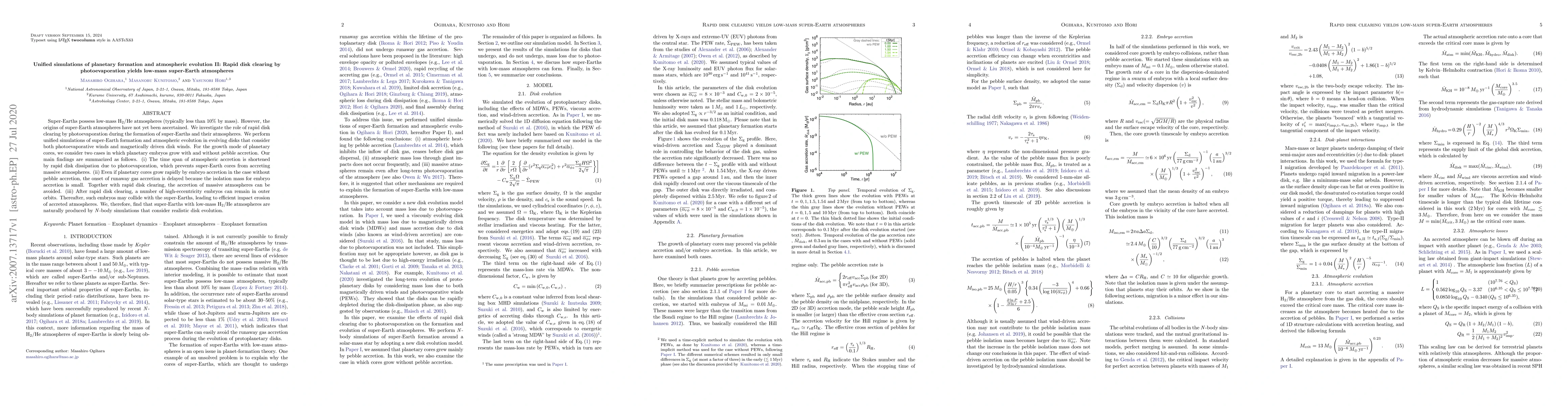 This paper investigates how rapid disk clearing by photoevaporation during planetary formation can lead to the formation of super-Earths with low-mass H$_2$/He atmospheres. The simulations suggest that photoevaporation shortens atmospheric accretion time, delays runaway gas accretion, and can cause impact erosion of atmospheres, naturally producing super-Earths with thin atmospheres.