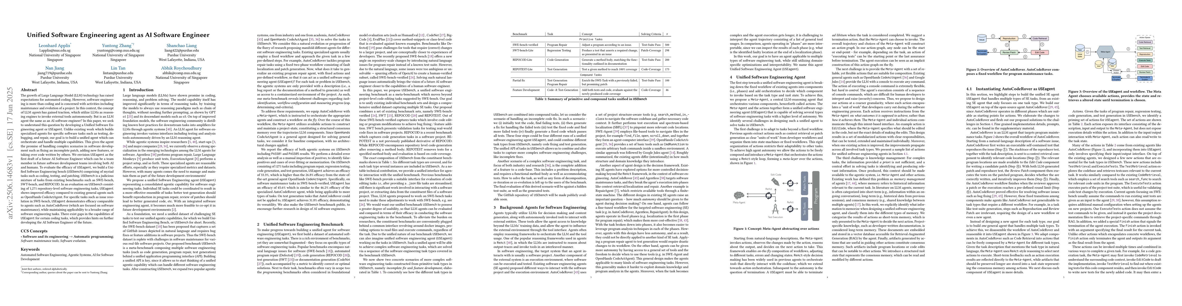 The growth of Large Language Model (LLM) technology has raised expectations for automated coding. However, software engineering is more than coding and is concerned with activities including maintenance and evolution of a project. In this context, the concept of LLM agents has gained traction, which utilize LLMs as reasoning engines to invoke external tools autonomously. But is an LLM agent the same as an AI software engineer? In this paper, we seek to understand this question by developing a Unified Software Engineering agent or USEagent. Unlike existing work which builds specialized agents for specific software tasks such as testing, debugging, and repair, our goal is to build a unified agent which can orchestrate and handle multiple capabilities. This gives the agent the promise of handling complex scenarios in software development such as fixing an incomplete patch, adding new features, or taking over code written by others. We envision USEagent as the first draft of a future AI Software Engineer which can be a team member in future software development teams involving both AI and humans. To evaluate the efficacy of USEagent, we build a Unified Software Engineering bench (USEbench) comprising of myriad tasks such as coding, testing, and patching. USEbench is a judicious mixture of tasks from existing benchmarks such as SWE-bench, SWT-bench, and REPOCOD. In an evaluation on USEbench consisting of 1,271 repository-level software engineering tasks, USEagent shows improved efficacy compared to existing general agents such as OpenHands CodeActAgent. There exist gaps in the capabilities of USEagent for certain coding tasks, which provides hints on further developing the AI Software Engineer of the future.