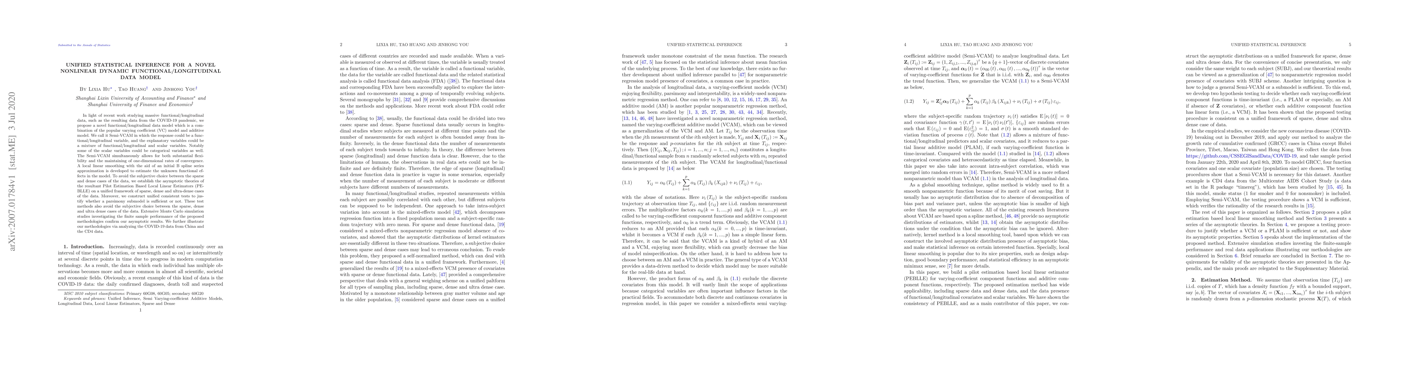 In light of recent work studying massive functional/longitudinal data, such as the resulting data from the COVID-19 pandemic, we propose a novel functional/longitudinal data model which is a combination of the popular varying coefficient (VC) model and additive model. We call it Semi-VCAM in which the response could be a functional/longitudinal variable, and the explanatory variables could be a mixture of functional/longitudinal and scalar variables. Notably some of the scalar variables could be categorical variables as well. The Semi-VCAM simultaneously allows for both substantial flexibility and the maintaining of one-dimensional rates of convergence. A local linear smoothing with the aid of an initial B spline series approximation is developed to estimate the unknown functional effects in the model. To avoid the subjective choice between the sparse and dense cases of the data, we establish the asymptotic theories of the resultant Pilot Estimation Based Local Linear Estimators (PEBLLE) on a unified framework of sparse, dense and ultra-dense cases of the data. Moreover, we construct unified consistent tests to justify whether a parsimony submodel is sufficient or not. These test methods also avoid the subjective choice between the sparse, dense and ultra dense cases of the data. Extensive Monte Carlo simulation studies investigating the finite sample performance of the proposed methodologies confirm our asymptotic results. We further illustrate our methodologies via analyzing the COVID-19 data from China and the CD4 data.
