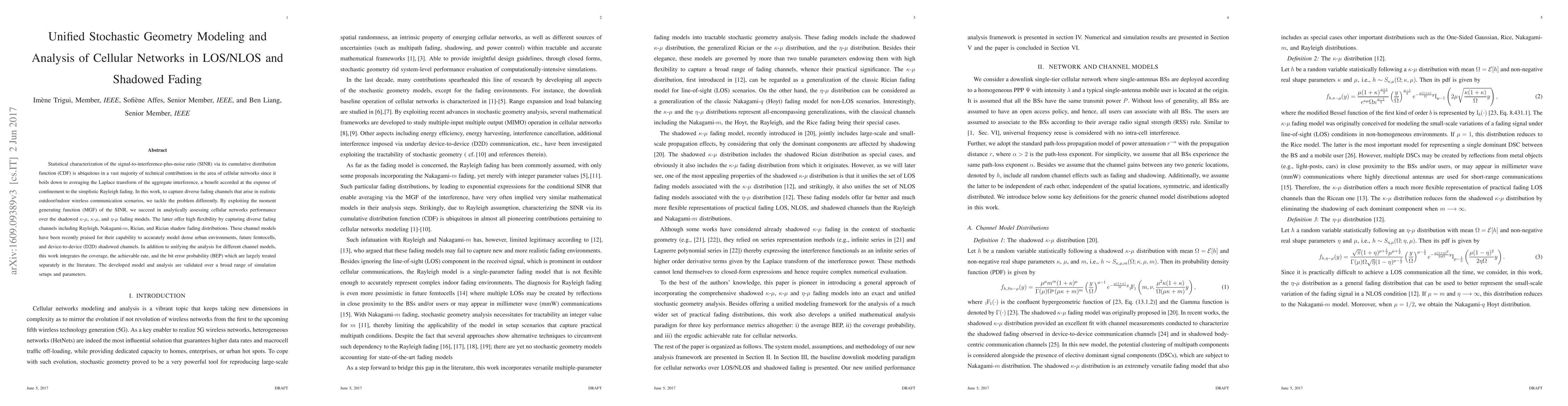 Statistical characterization of the signal-to-interference-plus-noise ratio (SINR) via its cumulative distribution function (CDF) is ubiquitous in a vast majority of technical contributions in the area of cellular networks since it boils down to averaging the Laplace transform of the aggregate interference, a benefit accorded at the expense of confinement to the simplistic Rayleigh fading. In this work, to capture diverse fading channels that appear in realistic outdoor/indoor wireless communication scenarios, we tackle the problem differently. By exploting the moment generating function (MGF) of the SINR, we succeed in analytically assessing cellular networks performance over the shadowed {\kappa}-{\mu}, {\kappa}-{\mu} and {\eta}-{\mu} fading models. The latter offer high flexibility by capturing diverse fading channels including Rayleigh, Nakagami-m, Rician, and Rician shadow fading distributions. These channel models have been recently praised for their capability to accurately model dense urban environments, future femtocells and device-to-device (D2D) shadowed channels. In addition to unifying the analysis for different channel models, this work integrates, for the first time, the coverage, the achievable rate, and the bit error probability (BEP), which are largely treated separately in the literature. The developed model and analysis are validated over a broad range of simulation setups and parameters.