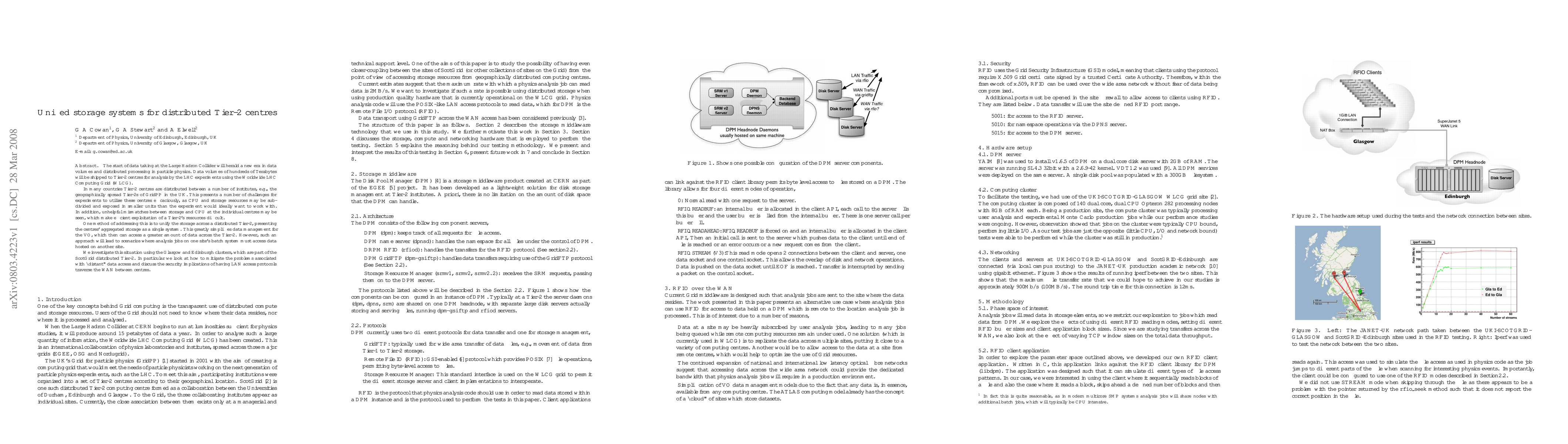 This paper explores unified storage systems for distributed Tier-2 centres in particle physics, focusing on the challenges of managing large data volumes across geographically spread institutes. It investigates methods to unify storage to simplify data management, while addressing issues of distant data access and security implications of WAN protocols.
