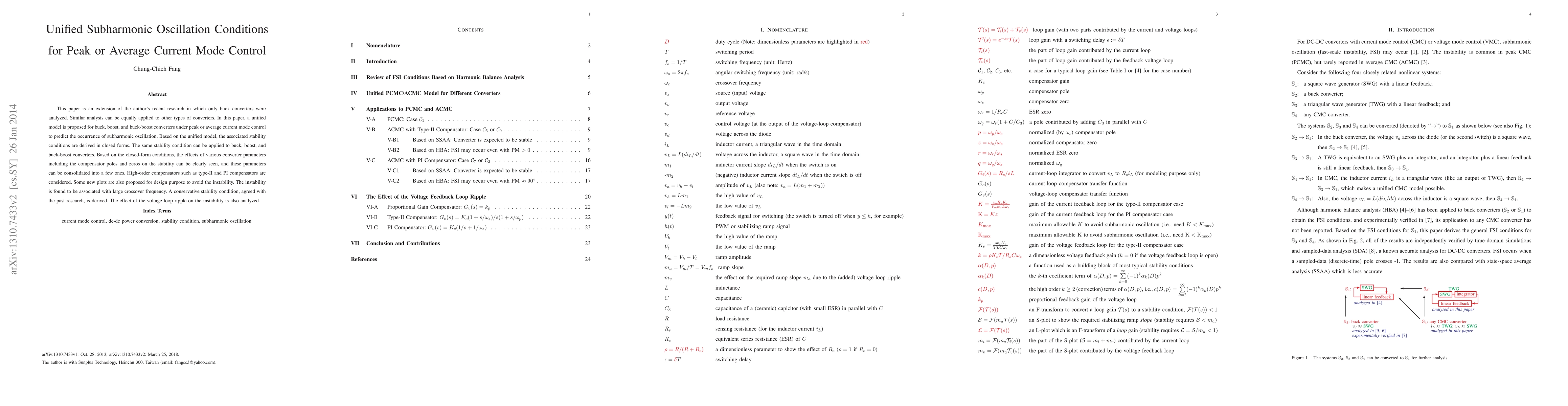 This paper proposes a unified model for predicting subharmonic oscillation in peak or average current mode control of buck, boost, and buck-boost converters, deriving closed-form stability conditions applicable to all. It analyzes the impact of various converter parameters on stability and suggests new design plots to avoid instability.