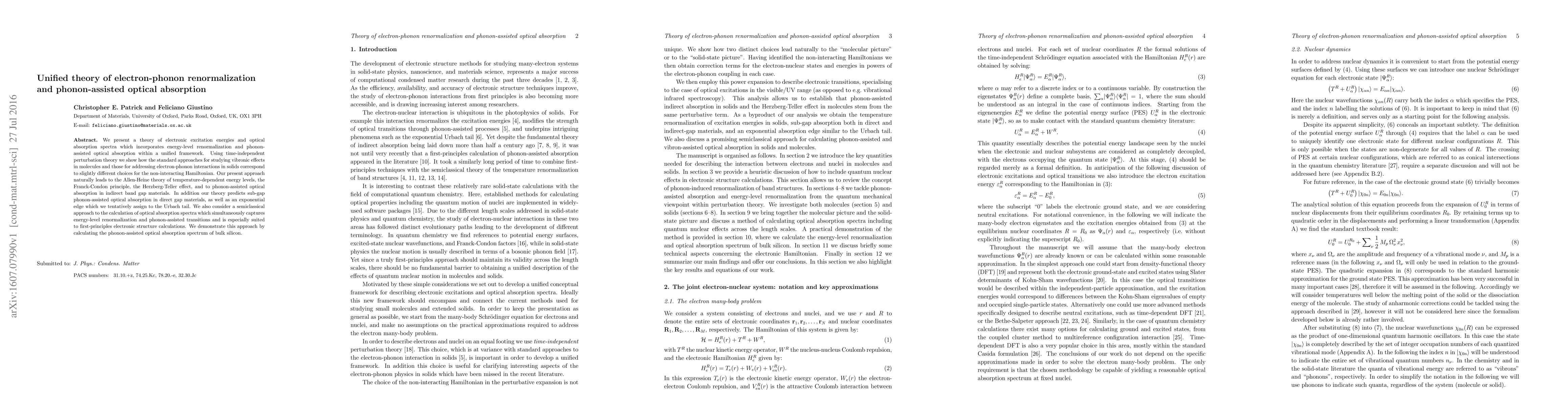 This paper develops a unified theory that combines electron-phonon renormalization and phonon-assisted optical absorption. It predicts sub-gap absorption in direct band gap materials and demonstrates its application with bulk silicon calculations.