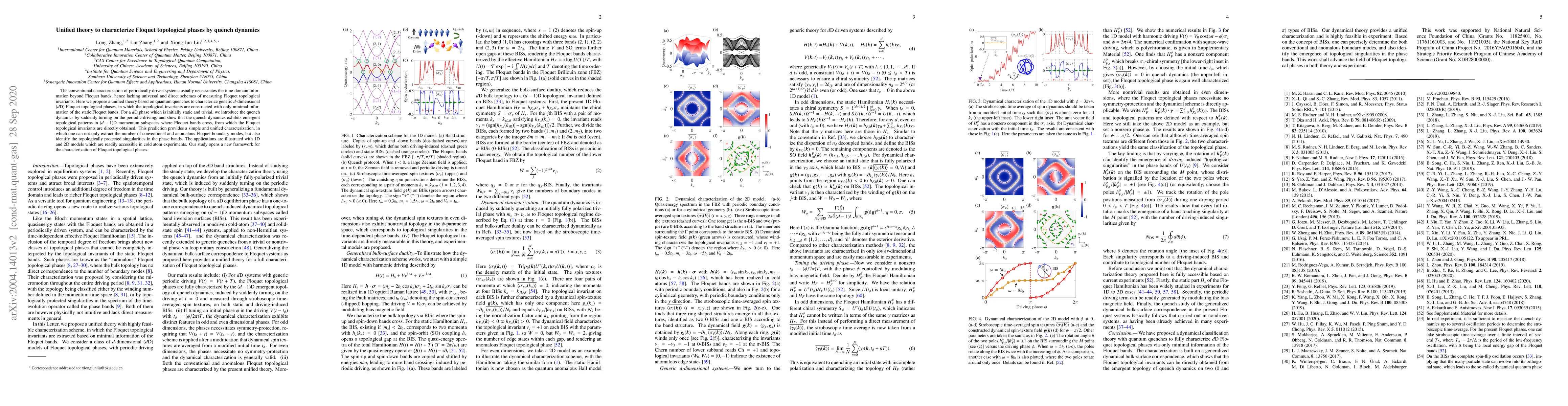 This paper proposes a unified theory using quantum quench dynamics to characterize $d$-dimensional Floquet topological phases, providing a simple method to extract topological invariants from minimal static Floquet band information and identifying topologically protected singularities. The approach is demonstrated with 1D and 2D models applicable to cold atom experiments.
