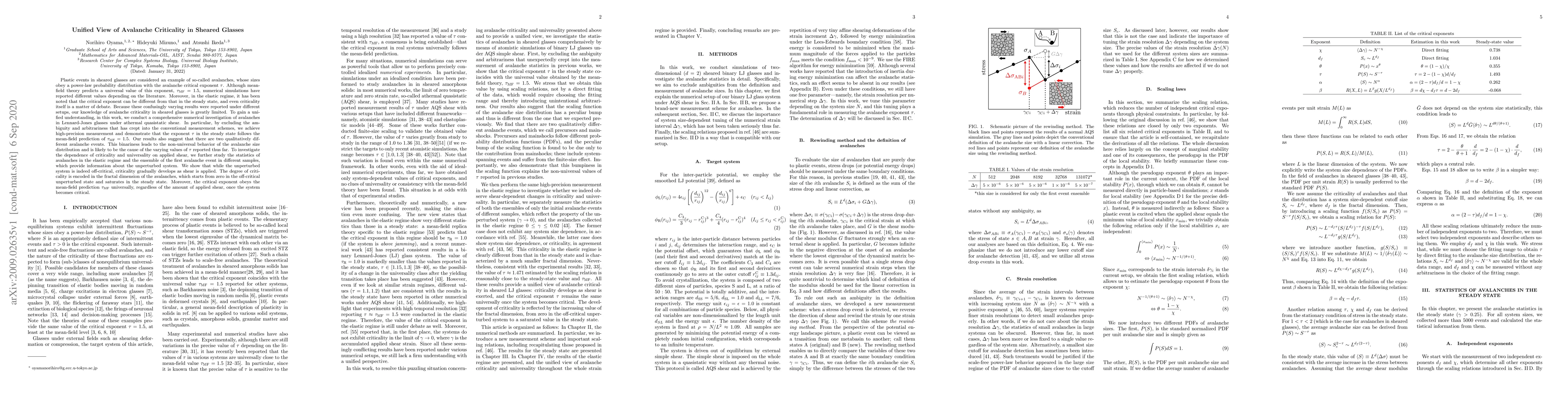 This paper conducts a detailed numerical investigation into avalanches in sheared glasses, finding that the critical exponent $\tau$ aligns with mean-field predictions in the steady state. It reveals two distinct avalanche types causing non-universal behavior, and shows that criticality emerges with applied shear, maintaining the mean-field exponent $\tau_{\rm MF}=1.5$ once critical.