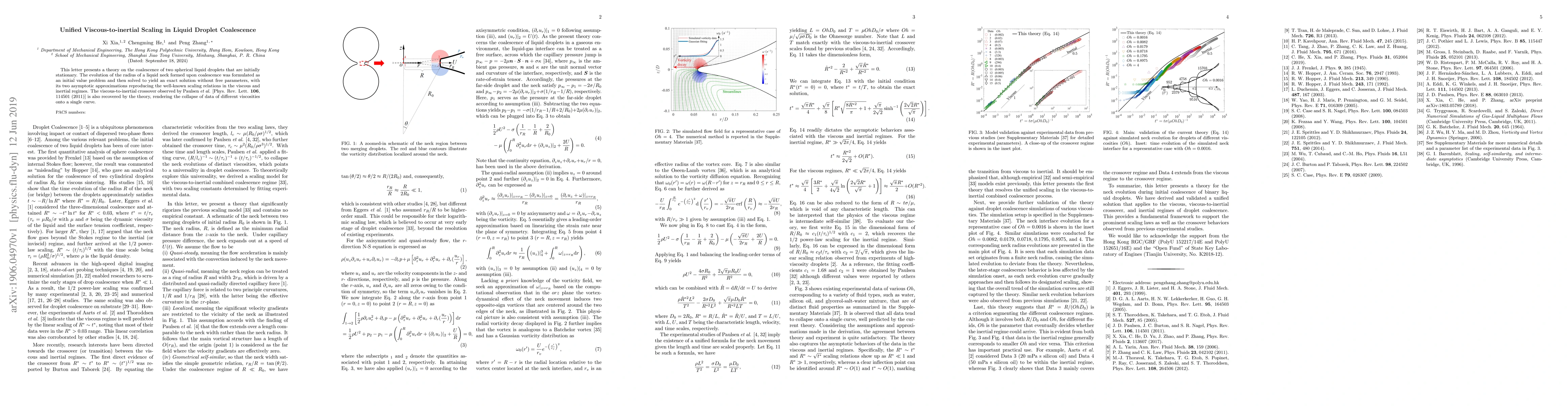 This paper develops a unified theory for liquid droplet coalescence, providing an exact solution for the neck radius evolution that accurately captures the viscous-to-inertial scaling crossover, and aligns experimental data across different viscosities onto a single curve.