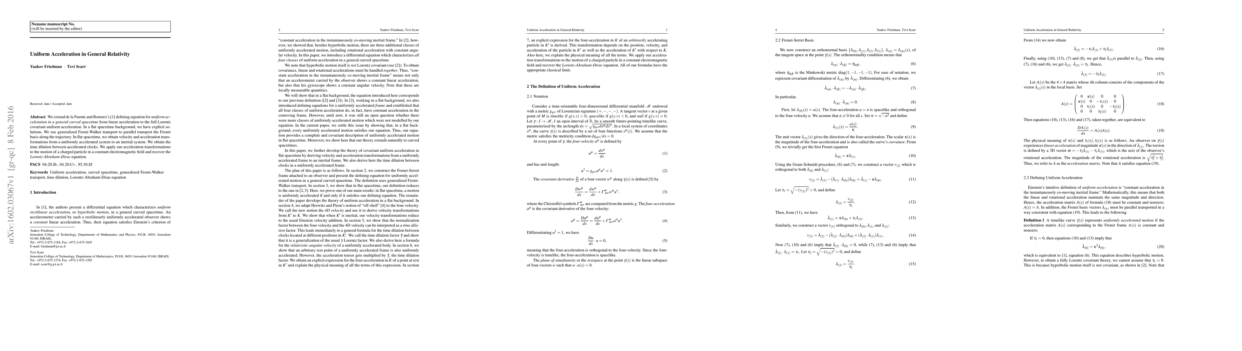 Researchers extend general relativity to include uniform acceleration, deriving transformations between accelerated and inertial frames that account for time dilation, and recovering the Lorentz-Abraham-Dirac equation in a constant electromagnetic field.