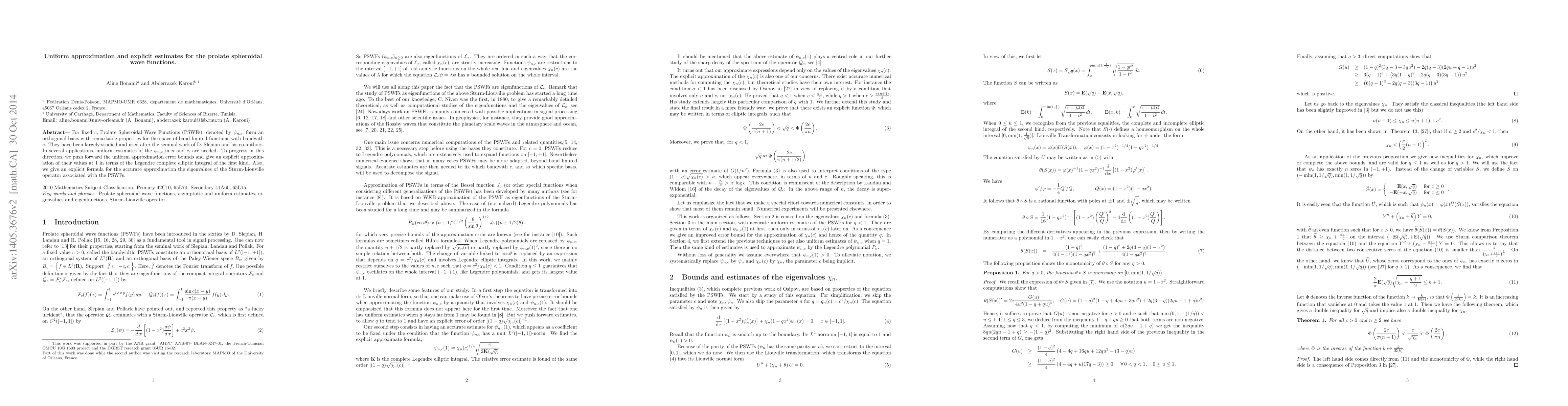 Researchers develop explicit estimates for Prolate Spheroidal Wave Functions (PSWFs), providing uniform approximation error bounds and formulas to accurately approximate eigenvalues of the associated Sturm-Liouville operator.