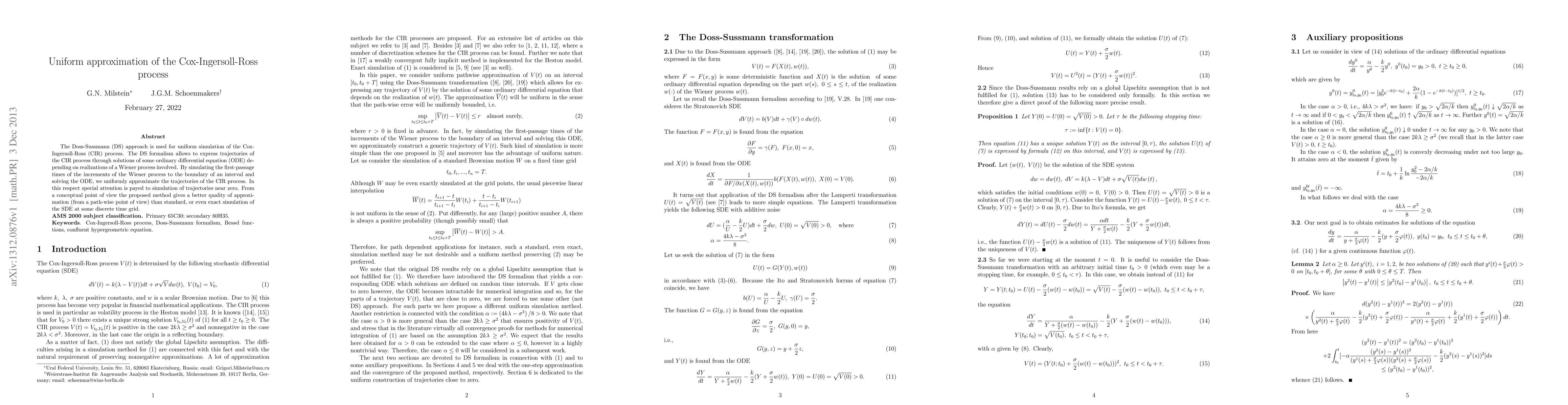 The Doss-Sussmann approach provides a uniform method to approximate Cox-Ingersoll-Ross process trajectories using Wiener process simulations and solving ordinary differential equations.