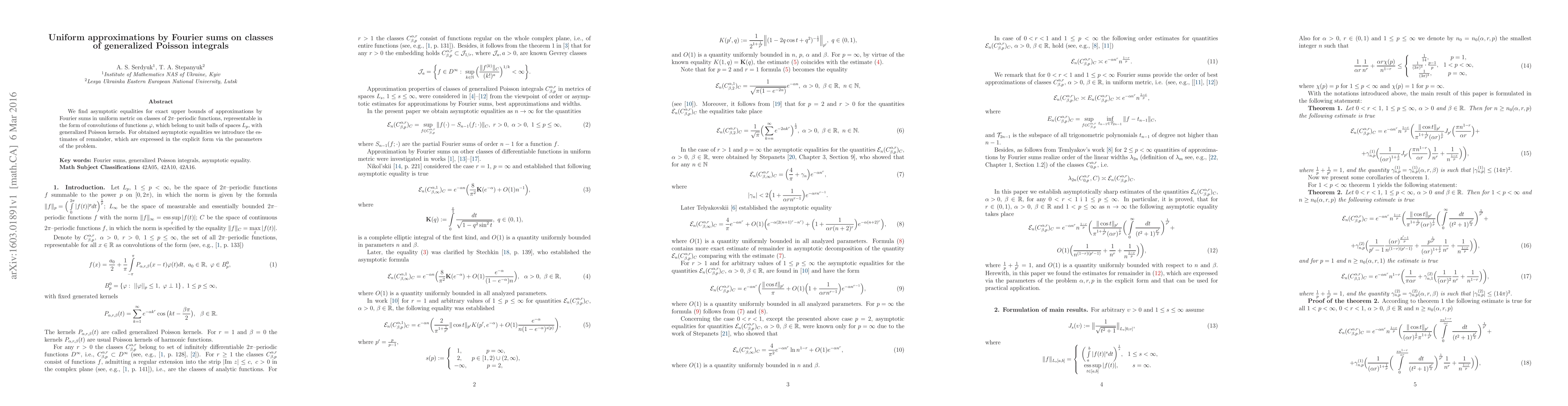 This paper investigates the asymptotic behavior of Fourier sum approximations for $2\pi$-periodic functions expressed as convolutions with generalized Poisson kernels and functions in $L_p$ spaces. It provides explicit estimates for the remainders of these approximations and derives exact upper bounds in uniform metric.