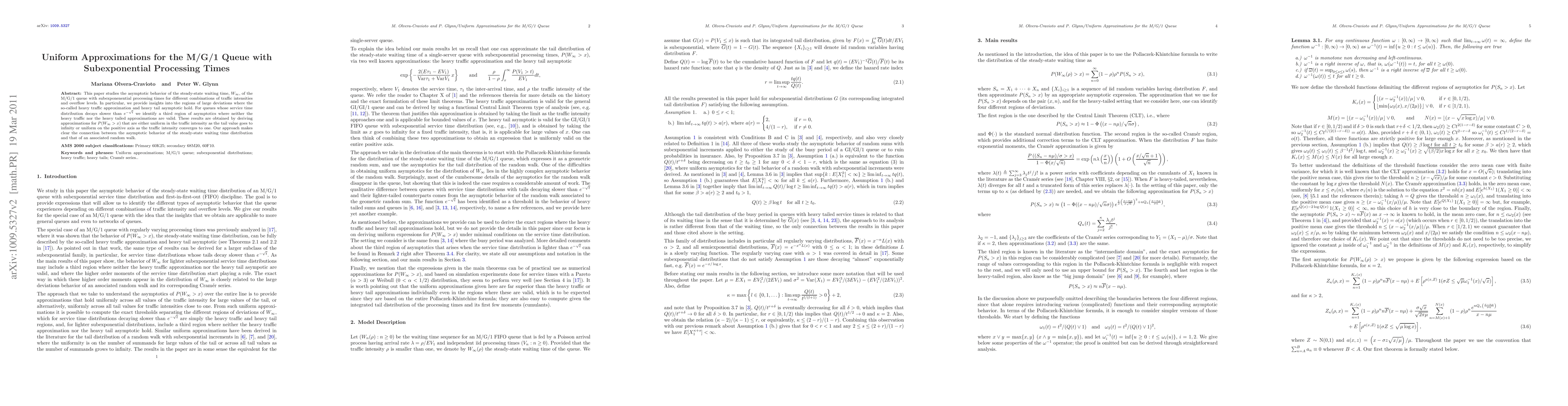 This paper investigates the asymptotic behavior of the steady-state waiting time in M/G/1 queues with subexponential processing times, identifying regions where heavy traffic and heavy tail approximations fail. It provides uniform approximations for the waiting time distribution, revealing the connection between the queue's waiting time and an associated random walk.