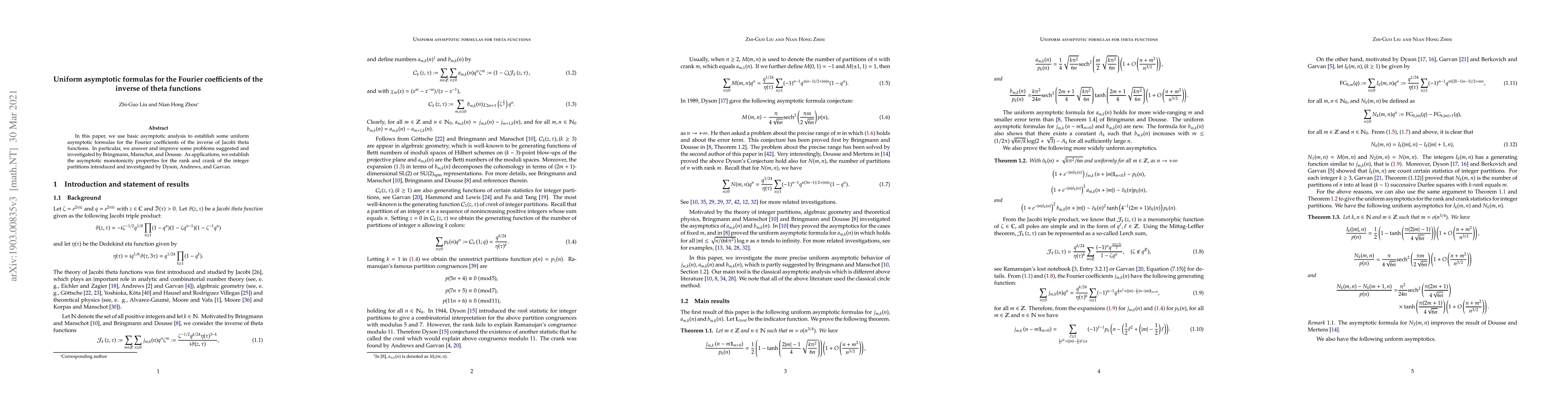In this paper, we use basic asymptotic analysis to establish some uniform asymptotic formulas for the Fourier coefficients of the inverse of Jacobi theta functions. In particular, we answer and improve some problems suggested and investigated by Bringmann, Manschot, and Dousse. As applications, we establish the asymptotic monotonicity properties for the rank and crank of the integer partitions introduced and investigated by Dyson, Andrews, and Garvan.