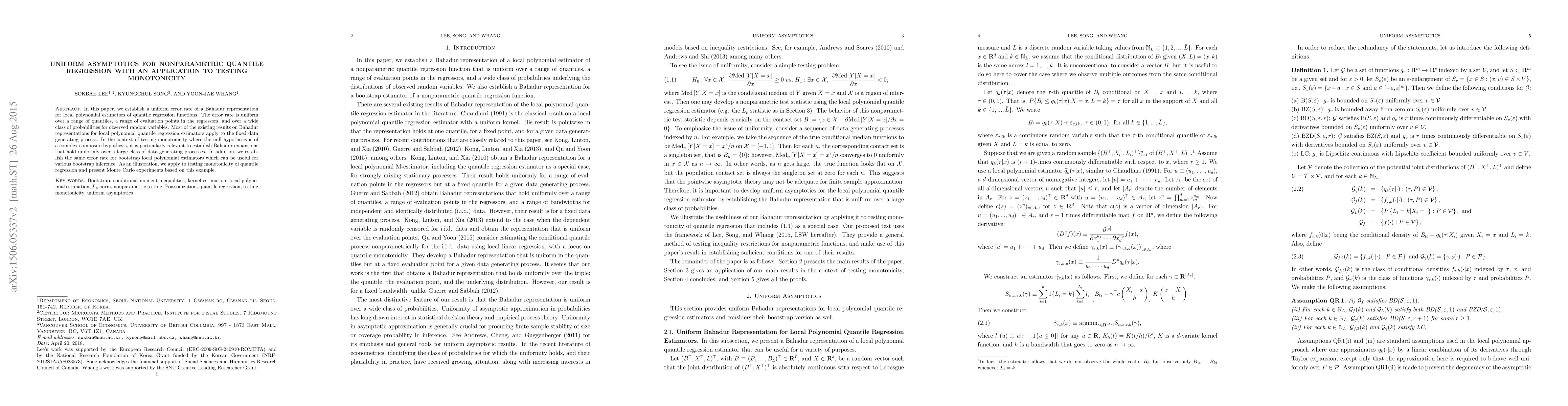 This paper establishes a uniform error rate for Bahadur representations of local polynomial estimators in nonparametric quantile regression, providing relevance for testing monotonicity. It also extends the error rate to bootstrap estimators, demonstrating its utility through Monte Carlo experiments on monotonicity testing.