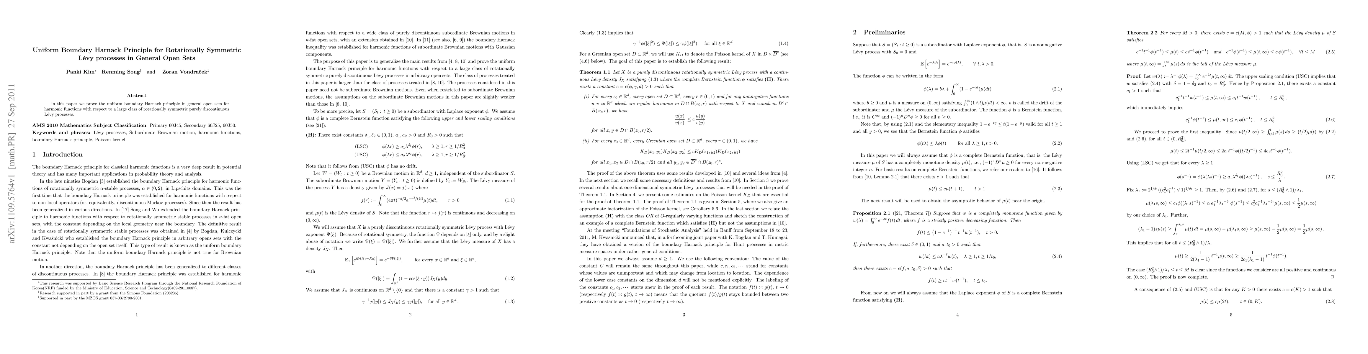 In this paper we prove the uniform boundary Harnack principle in general open sets for harmonic functions with respect to a large class of rotationally symmetric purely discontinuous L\'evy processes.