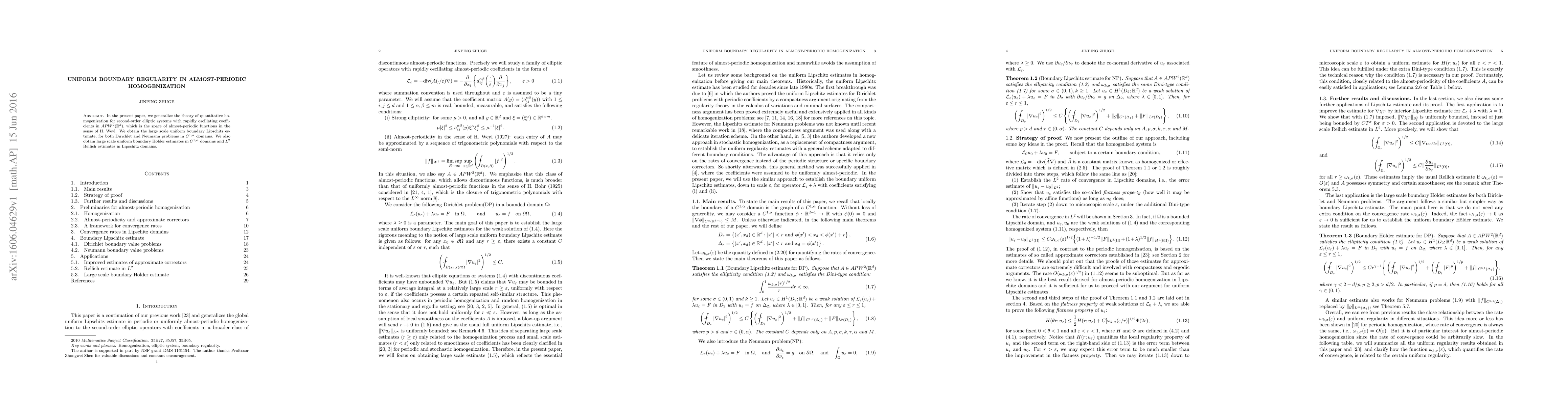 In the present paper, we generalize the theory of quantitative homogenization for second-order elliptic systems with rapidly oscillating coefficients in $APW^2(\mathbb{R}^d)$, which is the space of almost-periodic functions in the sense of H. Weyl. We obtain the large scale uniform boundary Lipschitz estimate, for both Dirichlet and Neumann problems in $C^{1,\alpha}$ domains. We also obtain large scale uniform boundary H\"{o}lder estimates in $C^{1,\alpha}$ domains and $L^2$ Rellich estimates in Lipschitz domains.
