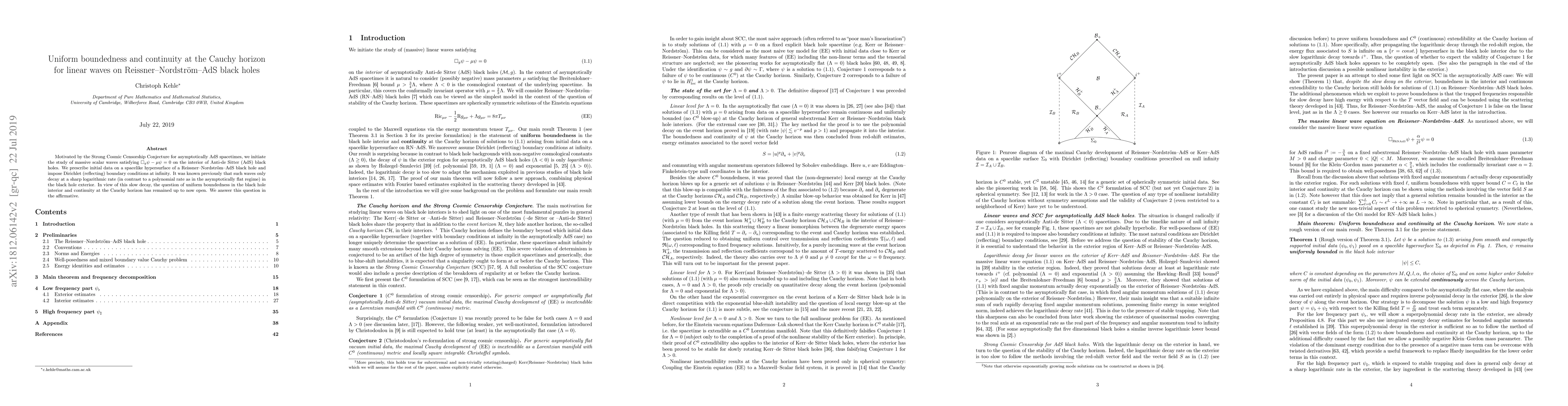 This paper investigates the uniform boundedness and continuity of massive scalar waves inside Reissner-Nordström-AdS black holes, confirming these properties in the context of the Strong Cosmic Censorship Conjecture. It resolves prior uncertainties regarding the behavior of such waves near the Cauchy horizon.