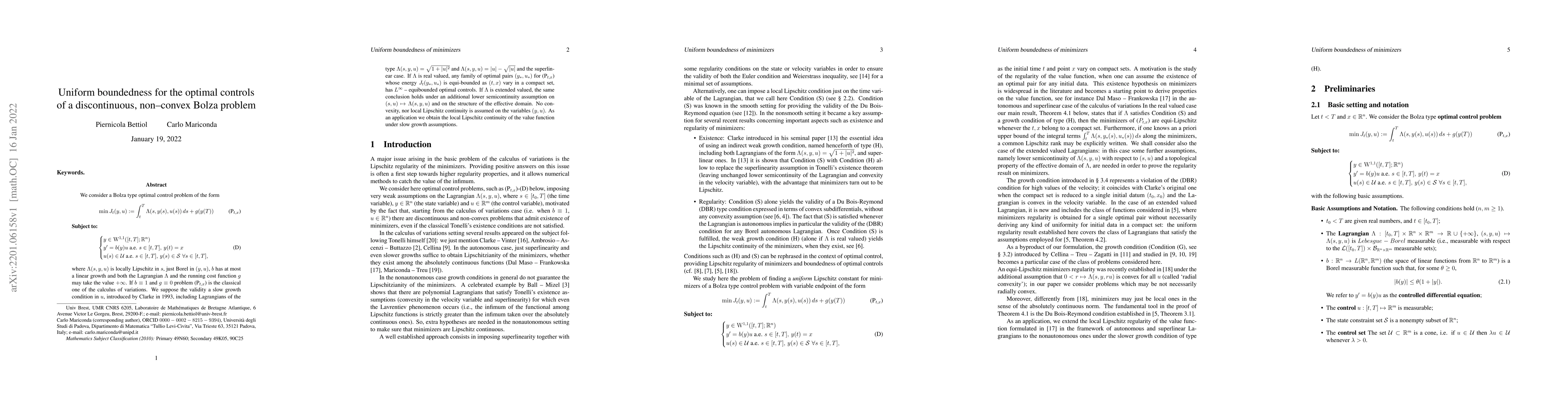 A research paper investigates optimal control problems with discontinuous and non-convex conditions, showing that under certain assumptions, bounded optimal controls exist and have specific properties.