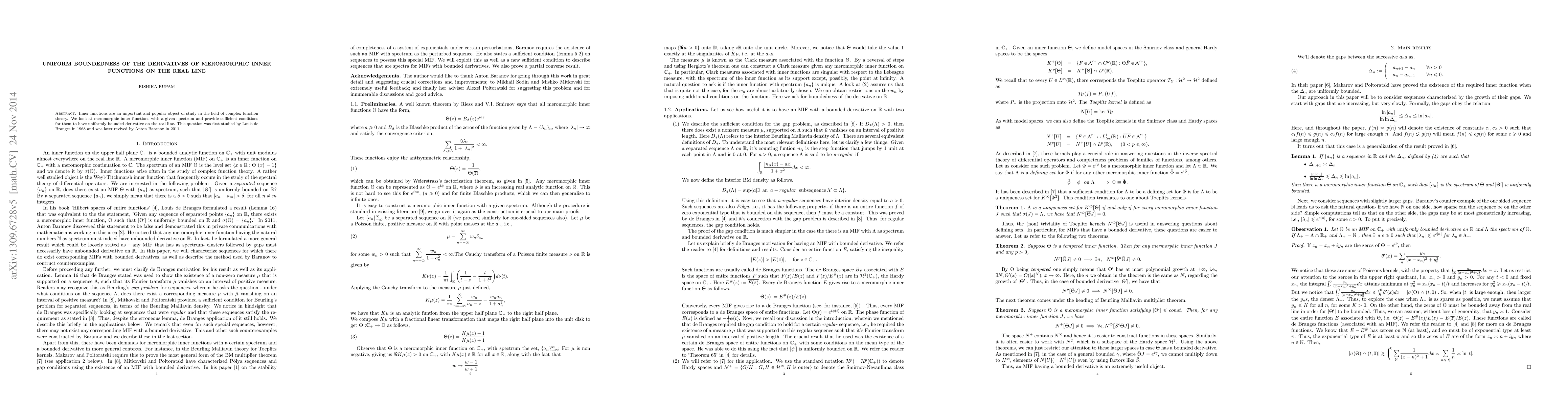 Summary: This paper investigates meromorphic inner functions with specified spectra, establishing conditions under which their derivatives remain uniformly bounded on the real line. The study builds on foundational work by Louis de Brange and recent contributions by Anton Baranov.