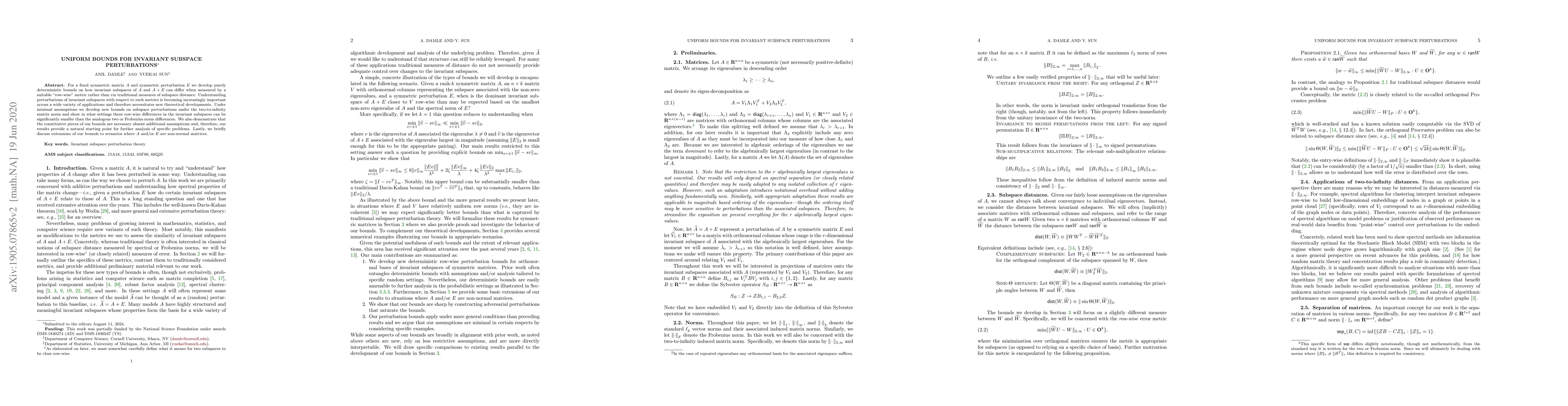 For a fixed symmetric matrix A and symmetric perturbation E we develop purely deterministic bounds on how invariant subspaces of A and A+E can differ when measured by a suitable "row-wise" metric rather than via traditional measures of subspace distance. Understanding perturbations of invariant subspaces with respect to such metrics is becoming increasingly important across a wide variety of applications and therefore necessitates new theoretical developments. Under minimal assumptions we develop new bounds on subspace perturbations under the two-to-infinity matrix norm and show in what settings these row-wise differences in the invariant subspaces can be significantly smaller than the analogous two or Frobenius norm differences. We also demonstrate that the constitutive pieces of our bounds are necessary absent additional assumptions and, therefore, our results provide a natural starting point for further analysis of specific problems. Lastly, we briefly discuss extensions of our bounds to scenarios where A and/or E are non-normal matrices.