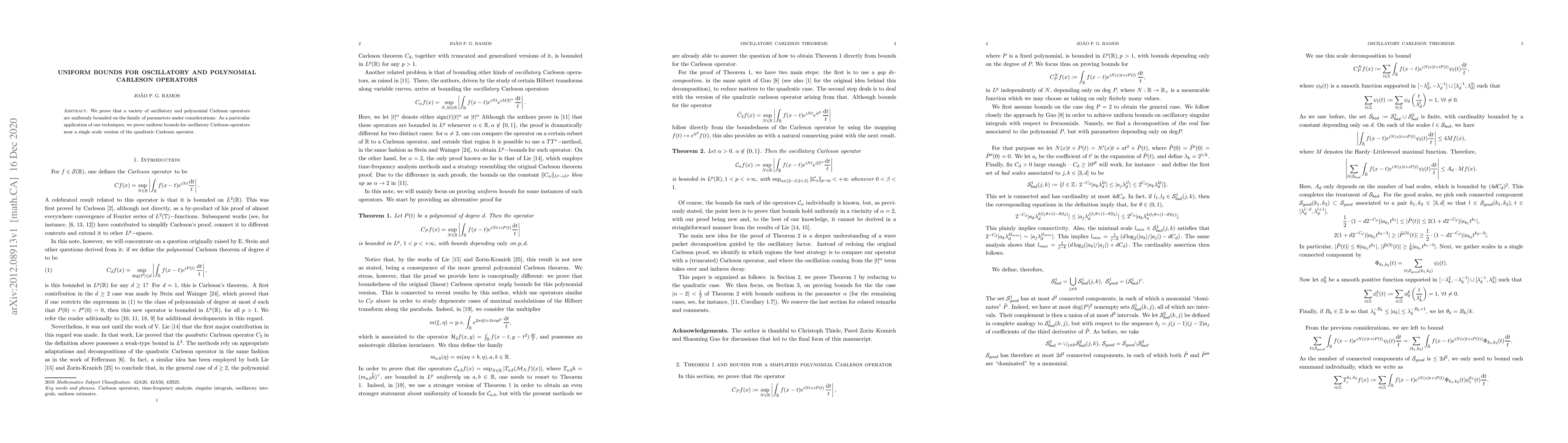 This paper establishes uniform bounds for a variety of oscillatory and polynomial Carleson operators across specified parameters. It also applies these techniques to demonstrate uniform bounds for oscillatory Carleson operators near the quadratic Carleson operator at a single scale.