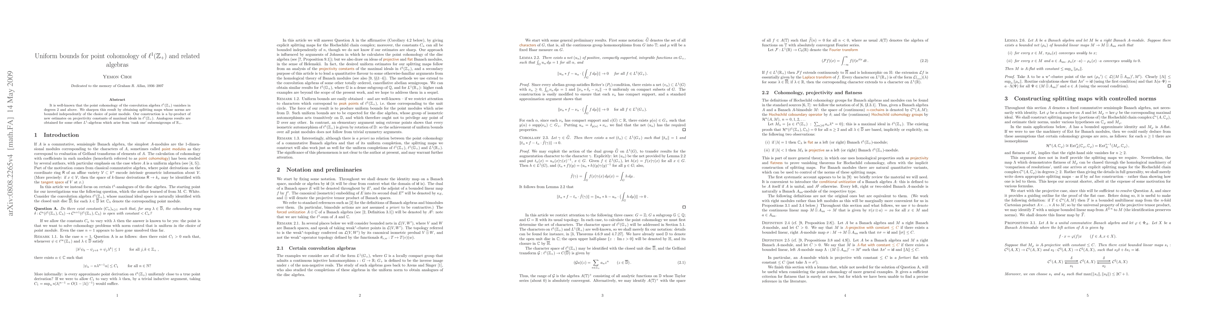 It is well-known that the point cohomology of the convolution algebra $\ell^1({\mathbb Z}_+)$ vanishes in degrees 2 and above. We sharpen this result by obtaining splitting maps whose norms are bounded independently of the choice of point module. Our construction is a by-product of new estimates on projectivity constants of maximal ideals in $\ell^1({\mathbb Z}_+)$. Analogous results are obtained for some other $L^1$-algebras which arise from `rank one' subsemigroups of ${\mathbb R}_+$.