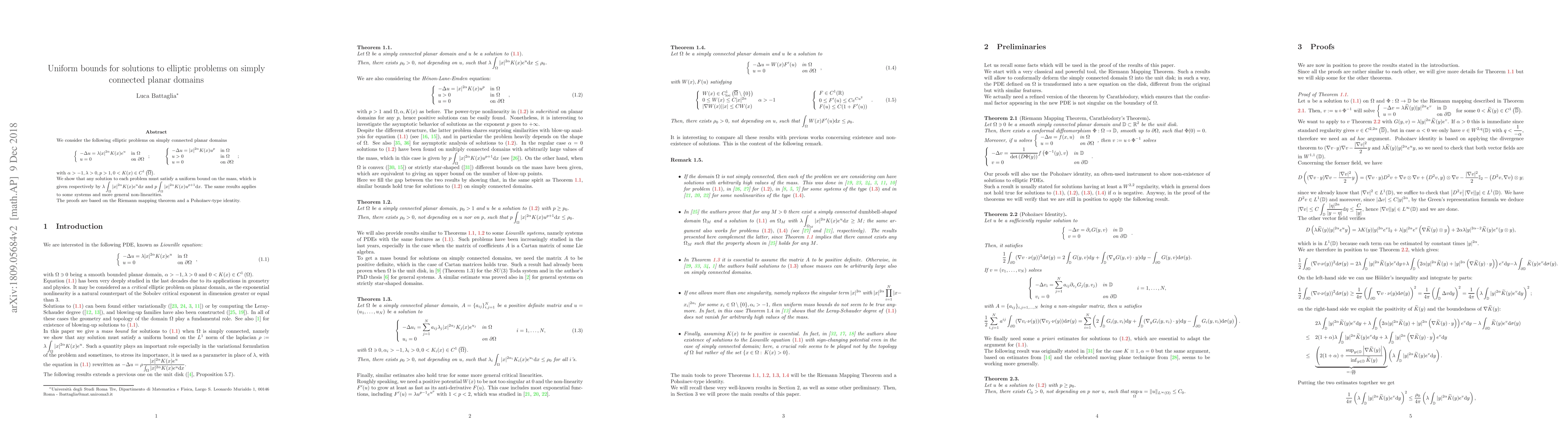 We consider the singular Liouville equation and the Henon-Lane-Emden problem on simply connected planar domains. We show that any solution to each problem must satisfy a uniform bound on the mass. The same results applies to some systems and more general non-linearities. The proofs are based on the Riemann mapping theorem and a Pohozaev-type identity.