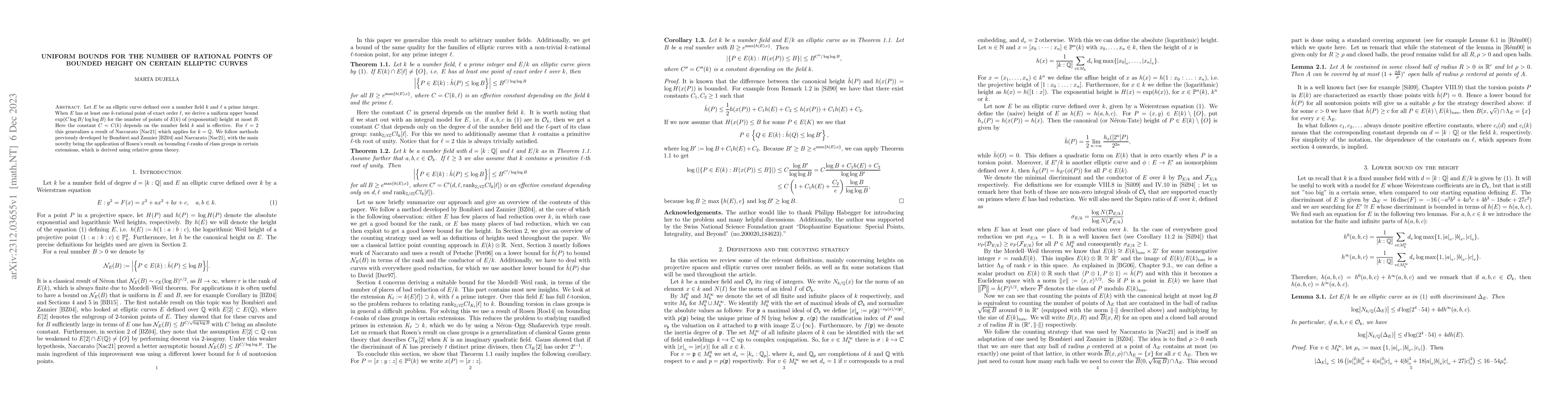 Let $E$ be an elliptic curve defined over a number field $k$ and $\ell$ a prime integer. When $E$ has at least one $k$-rational point of exact order $\ell$, we derive a uniform upper bound $\exp(C \log B / \log \log B)$ for the number of points of $E(k)$ of (exponential) height at most $B$. Here the constant $C = C(k)$ depends on the number field $k$ and is effective. For $\ell = 2$ this generalizes a result of Naccarato which applies for $k=\mathbb{Q}$. We follow methods previously developed by Bombieri and Zannier and further by Naccarato, with the main novelty being the application of Rosen's result on bounding $\ell$-ranks of class groups in certain extensions, which is derived using relative genus theory.