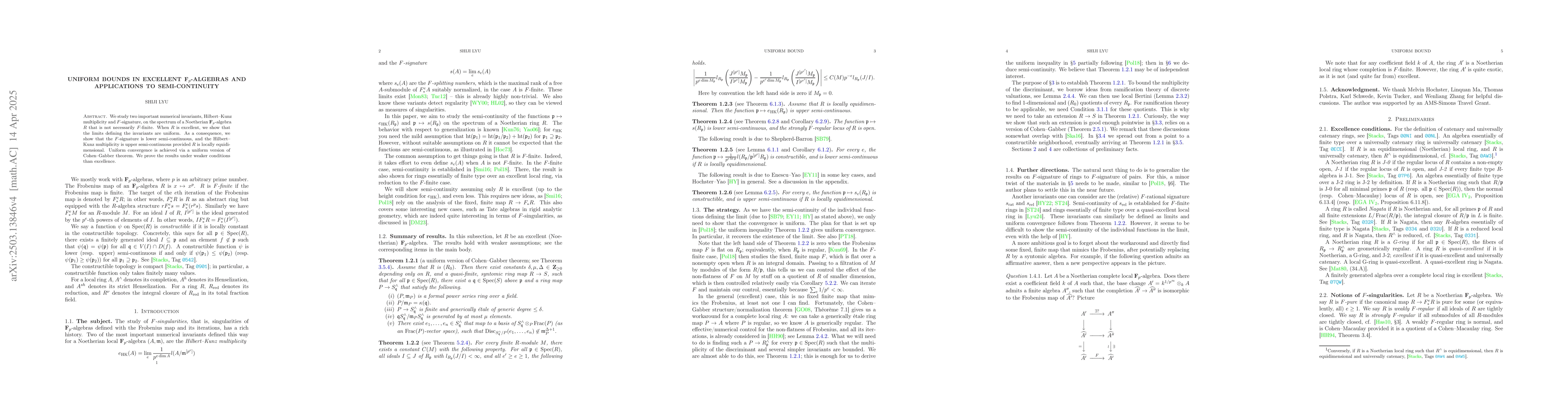 The research employs techniques from commutative algebra, focusing on Noetherian F_p-algebras and utilizing properties of excellence, Cohen-Gabber theorem, and uniform convergence.