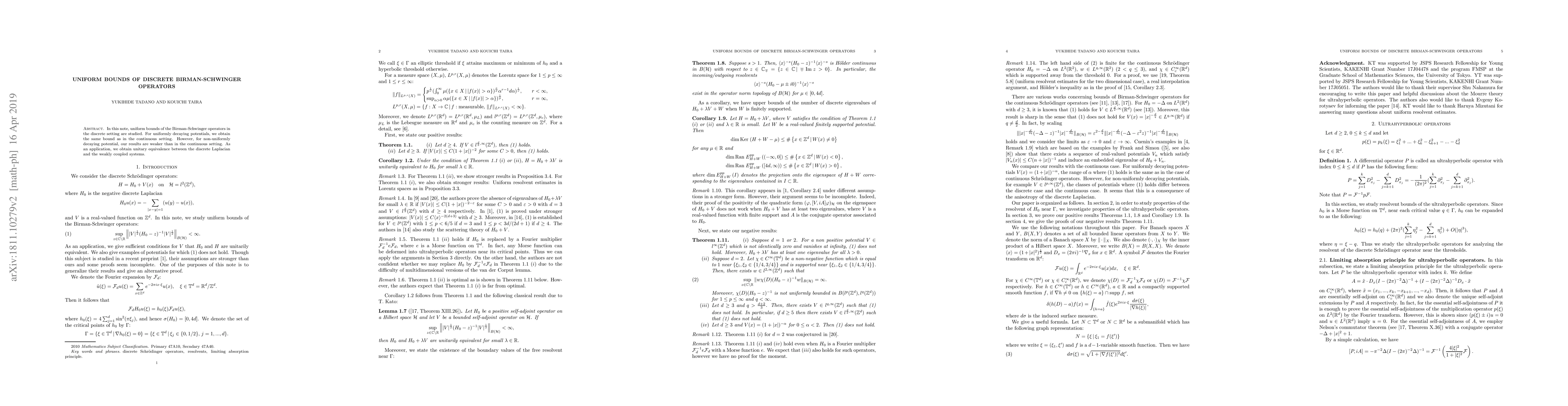 Researchers found uniform bounds for discrete Birman-Schwinger operators, with stronger results for uniformly decaying potentials. This discovery enables unitary equivalence between the discrete Laplacian and weakly coupled systems.