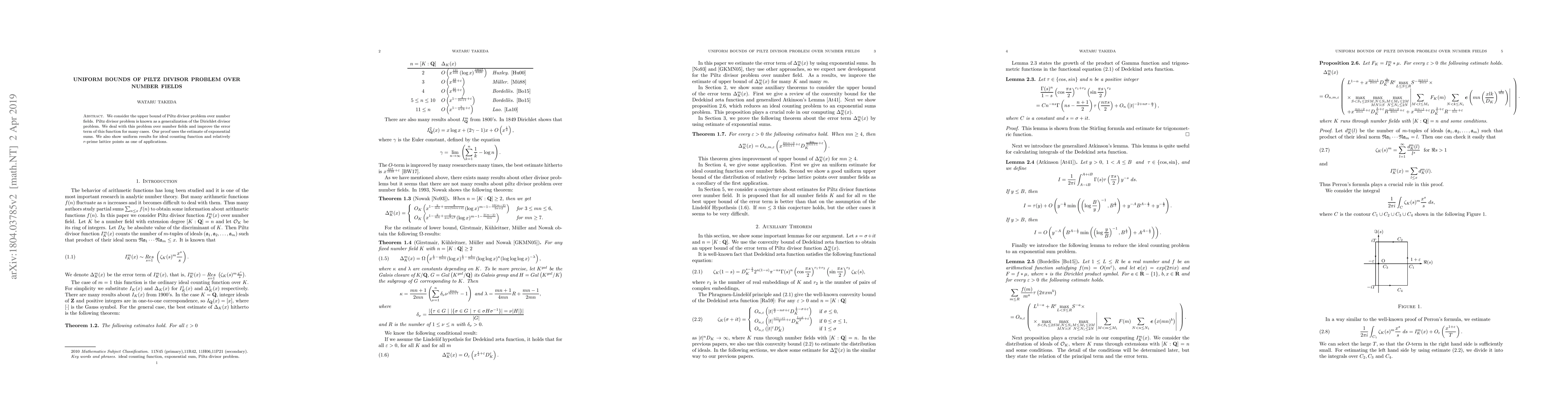 This paper improves the upper bound of the Piltz divisor problem over number fields, a generalization of the Dirichlet divisor problem, by refining the error term using estimates of exponential sums. It also demonstrates uniform results for ideal counting functions and relatively $r$-prime lattice points.