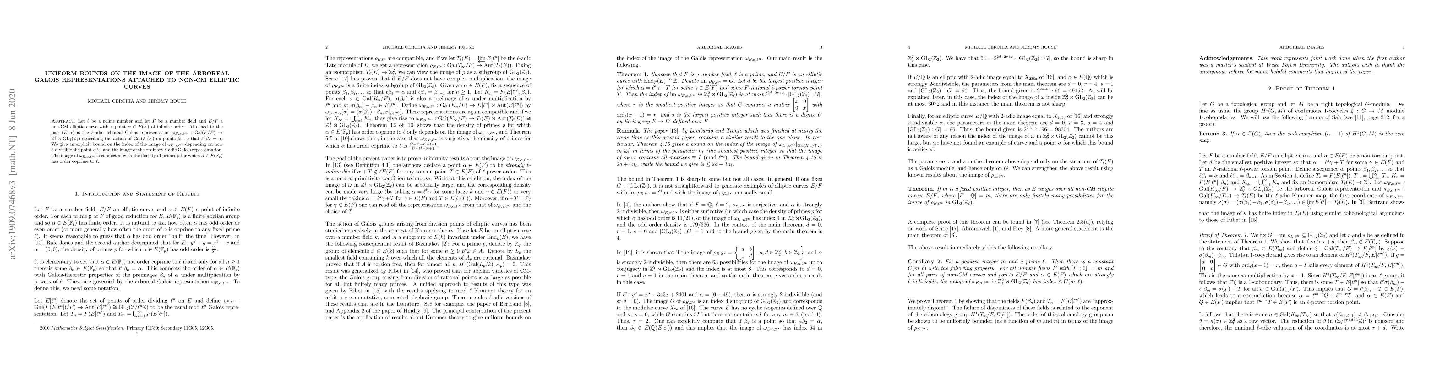 This paper provides explicit uniform bounds on the image of the arboreal Galois representation associated with non-CM elliptic curves, showing a dependency on the $\ell$-divisibility of a given point and the image of the ordinary $\ell$-adic Galois representation. The results connect the image of the representation to the density of primes where the point has an order coprime to $\ell$.