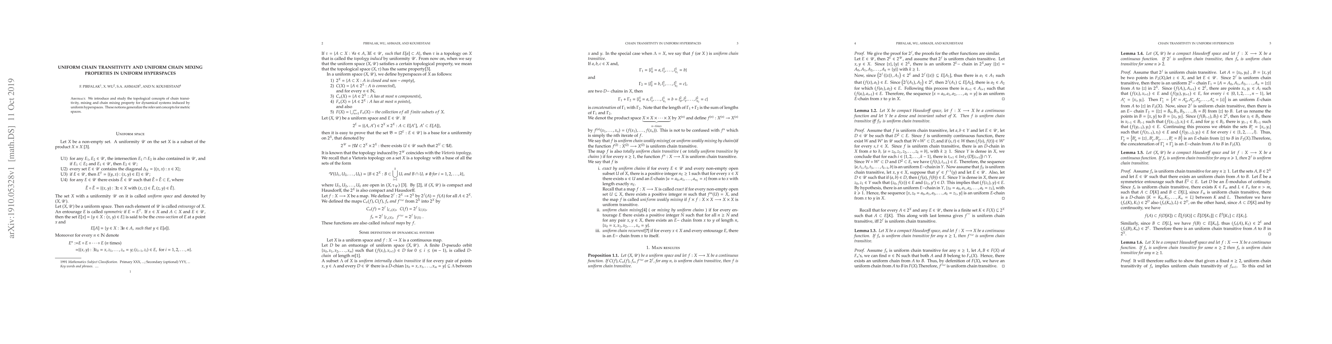 Summary: This paper explores the topological concepts of chain transitivity, mixing, and chain mixing in the context of uniform hyperspaces, extending these ideas beyond traditional metric spaces. The study aims to generalize the relevant dynamical system properties.