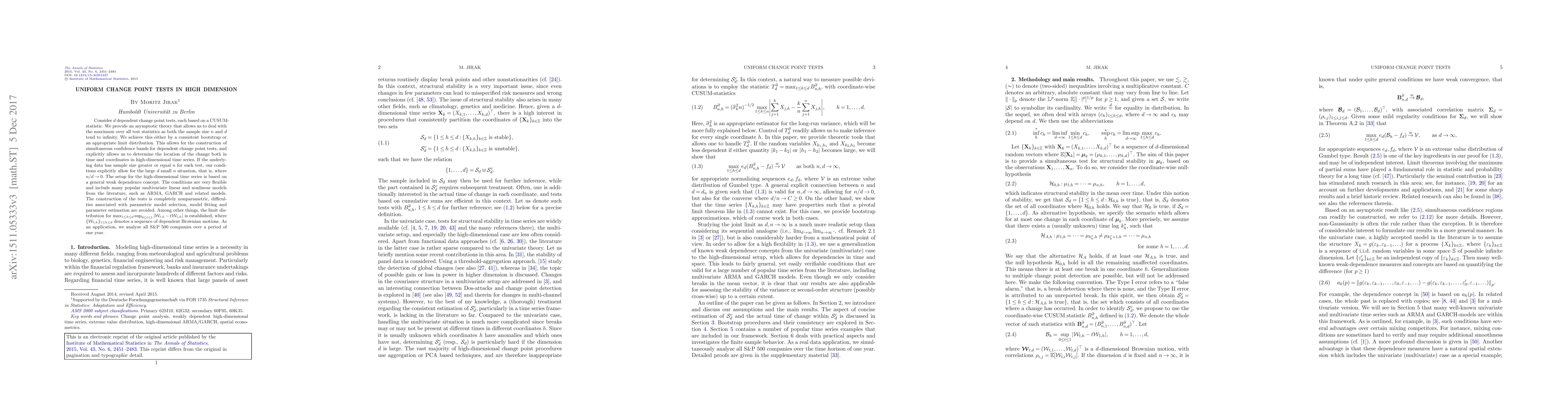 This research paper develops asymptotic theory for uniform change point tests in high-dimensional time series, allowing for simultaneous confidence bands and location of changes in both time and coordinates.