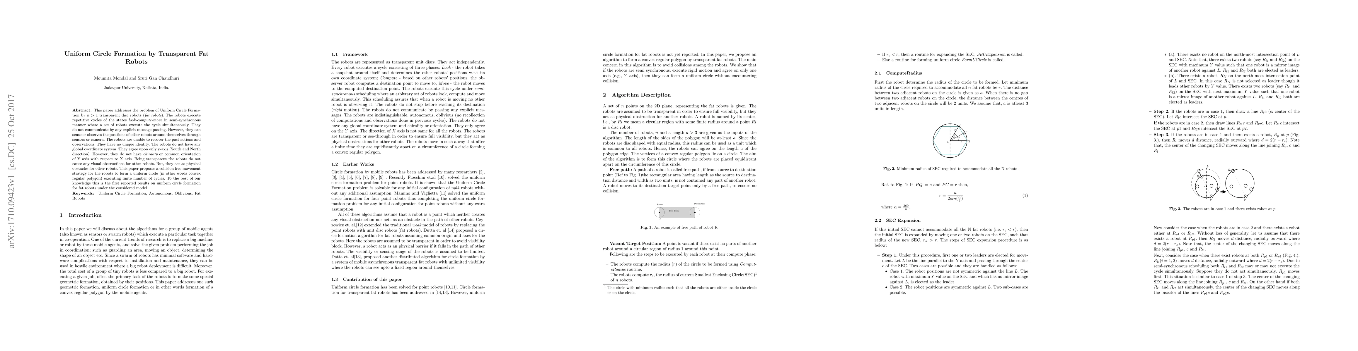 The paper presents a collision-free movement strategy and algorithms for transparent fat robots to form a uniform circle without explicit communication or unique identities.