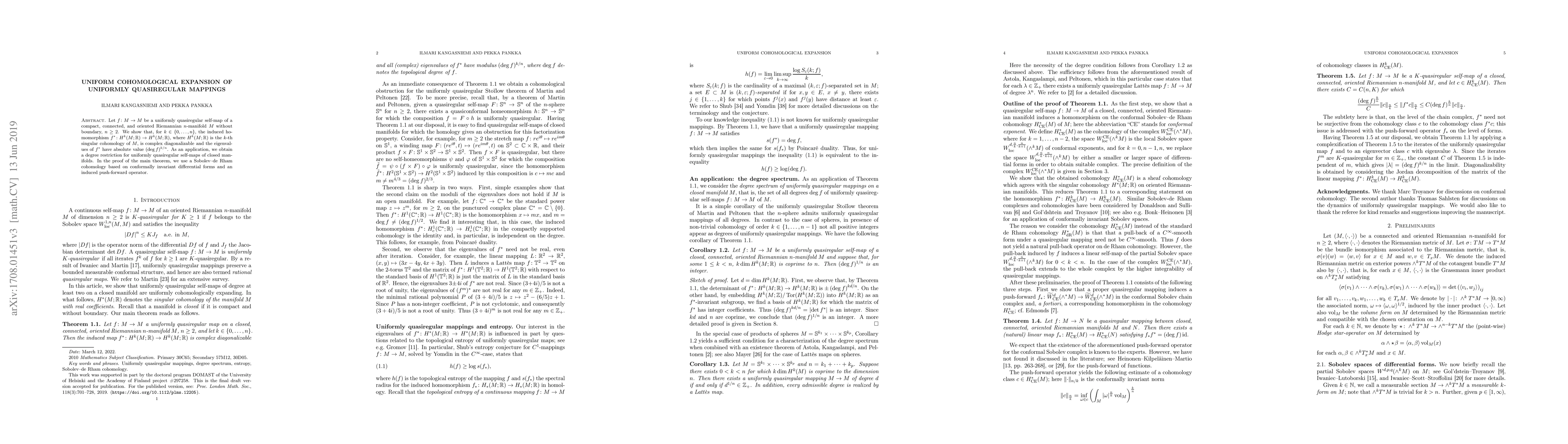 This paper shows that uniformly quasiregular self-mappings of compact manifolds have specific properties on their induced cohomology groups, leading to a degree restriction for such mappings.
