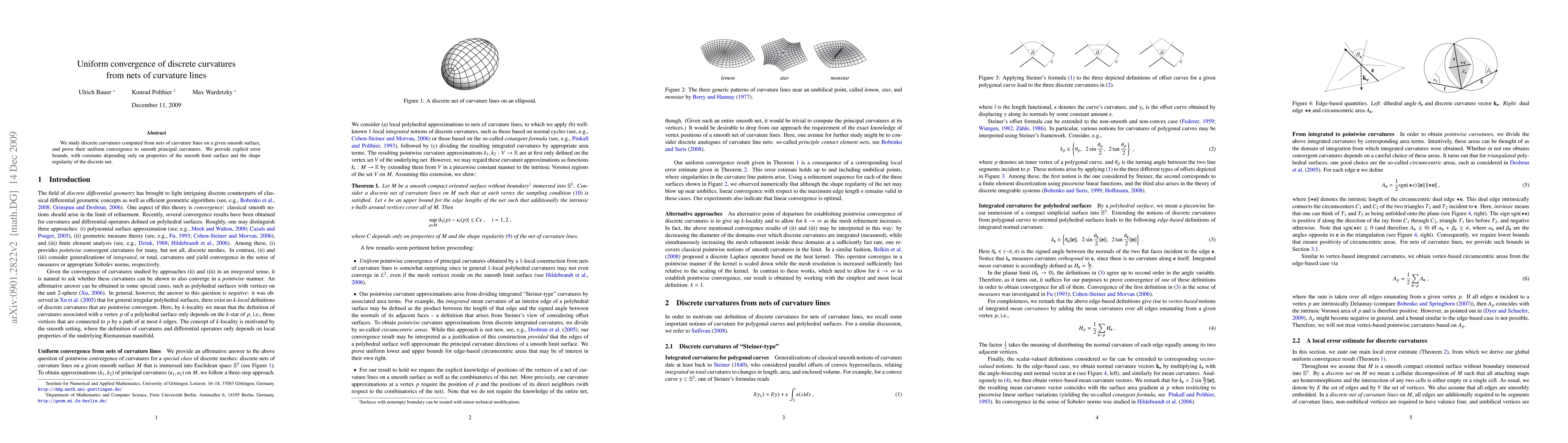 Researchers prove that discrete curvatures from nets of curvature lines on a surface converge uniformly to smooth principal curvatures, with error bounds depending on the limit surface's properties and the net's shape regularity.