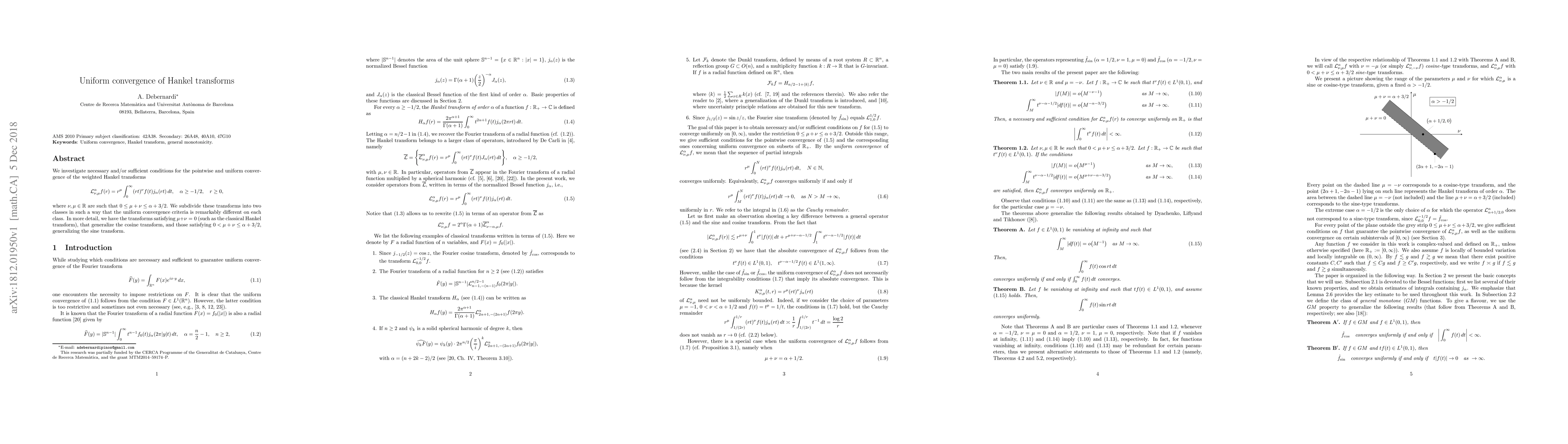 The work distinguishes itself by not only identifying but also rigorously proving the different uniform convergence criteria for two subclasses of Hankel transforms, which was not previously systematically addressed in literature.