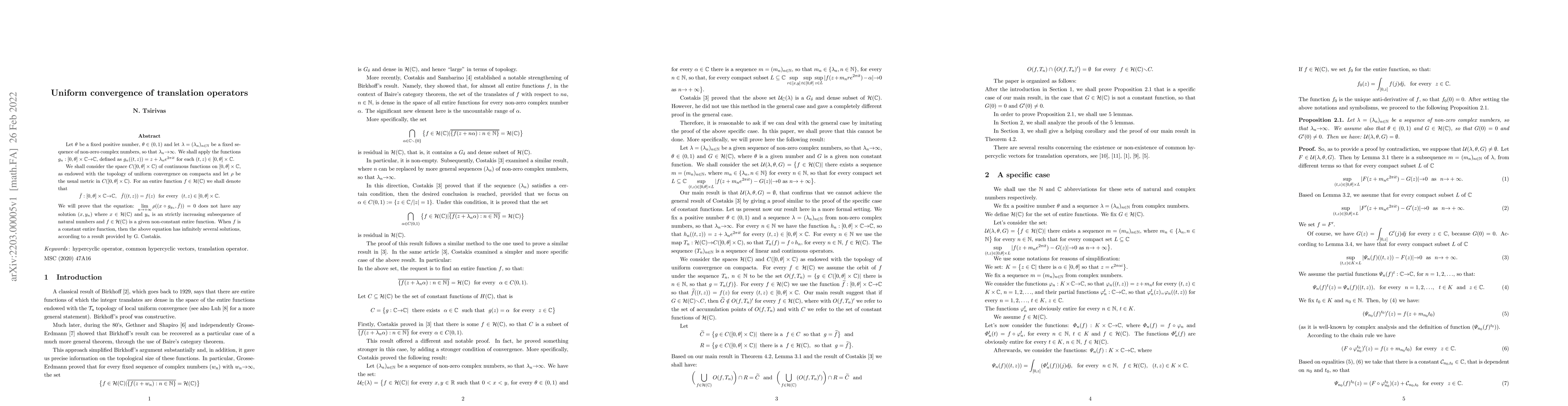 It is well known that there are entire functions whose orbit approximates any other entire function under the action of a sequence of translation operators . This result also holds for an uncountable family of sequences of translation operators when the convergence is pointwise .We prove that this result does not hold uniformly .