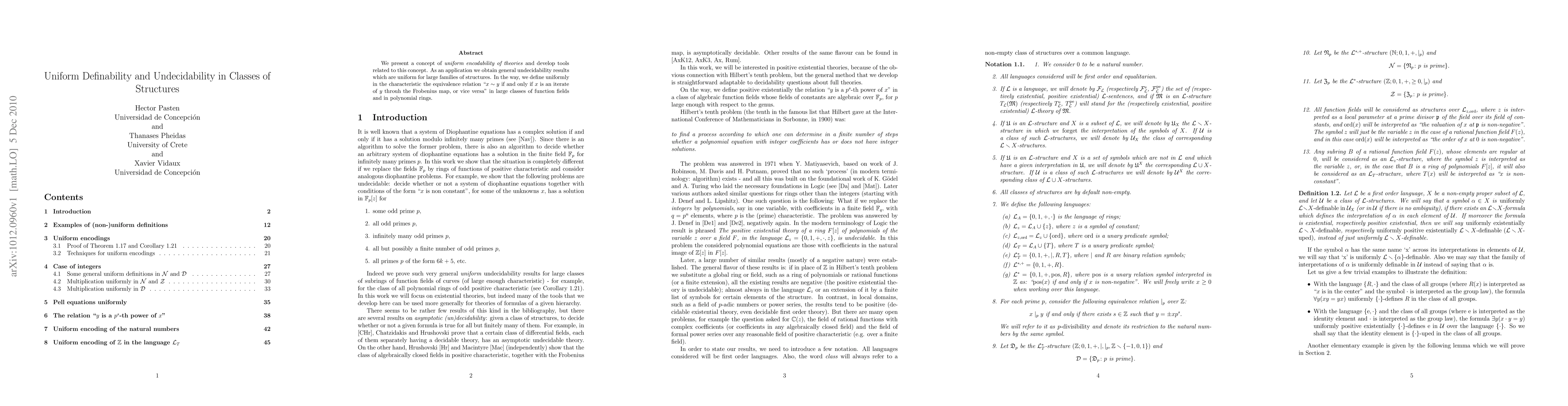 This paper introduces a concept of uniform encodability for theories and uses it to derive general undecidability results for large families of structures, including function fields and polynomial rings, where it defines a specific equivalence relation.