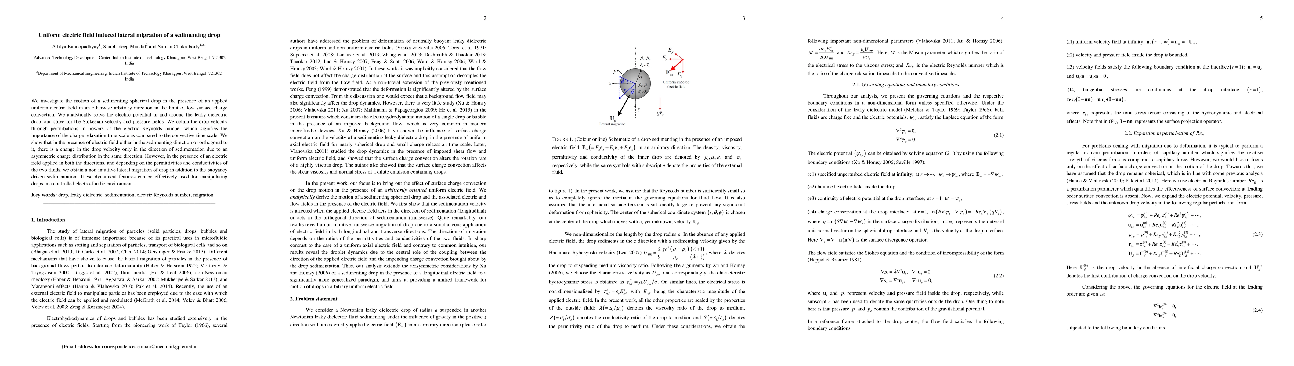 A study finds that an electric field can cause a sedimenting drop to migrate laterally under certain conditions, offering a new method for controlling drops in electro-fluidic environments.