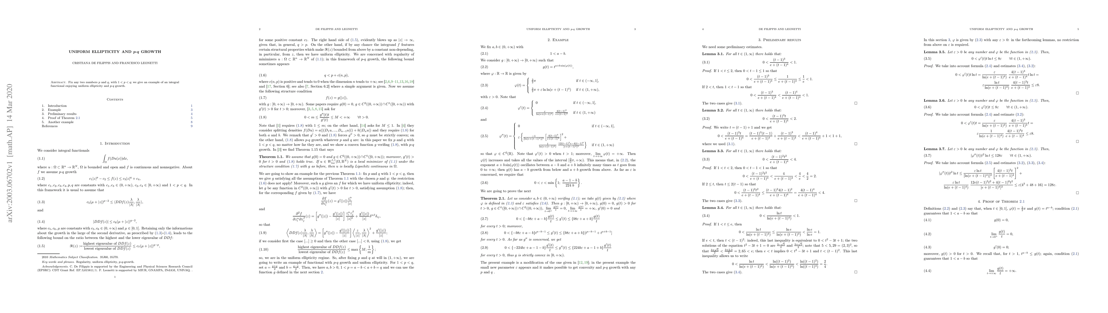 A research paper demonstrates an integral functional with uniform ellipticity and p-q growth for fixed numbers p and q (1<p<q), providing a new example of such a functional.