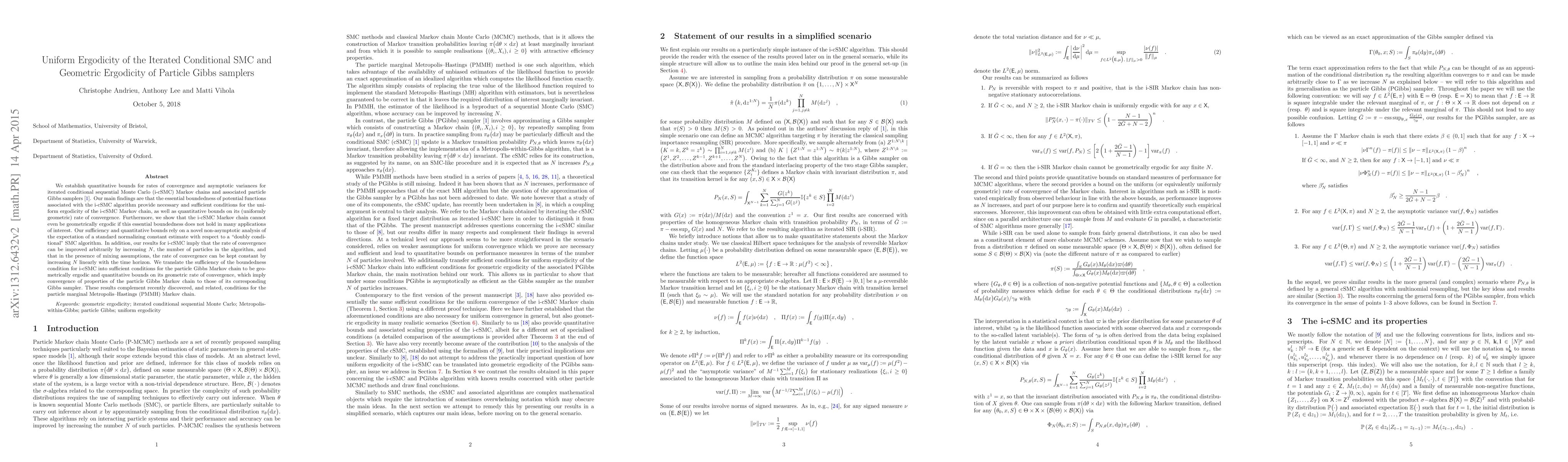 This paper establishes conditions for uniform ergodicity of iterated conditional sequential Monte Carlo (i-cSMC) Markov chains and geometric ergodicity of particle Gibbs samplers. It shows that essential boundedness of potential functions ensures uniform ergodicity and provides quantitative bounds on convergence rates. The study also demonstrates that increasing the number of particles can improve convergence rates.