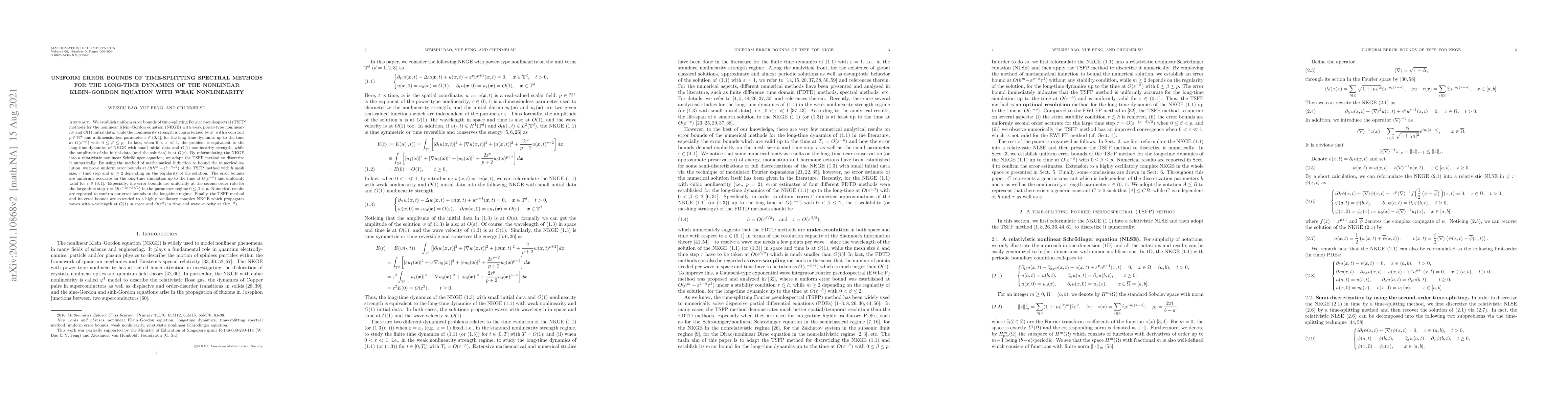 This paper establishes uniform error bounds for a time-splitting Fourier pseudospectral method applied to the long-time dynamics of the nonlinear Klein-Gordon equation with weak nonlinearity. The method achieves uniform accuracy up to time $O(\varepsilon^{-eta})$ and is shown to be second-order accurate for large time steps.