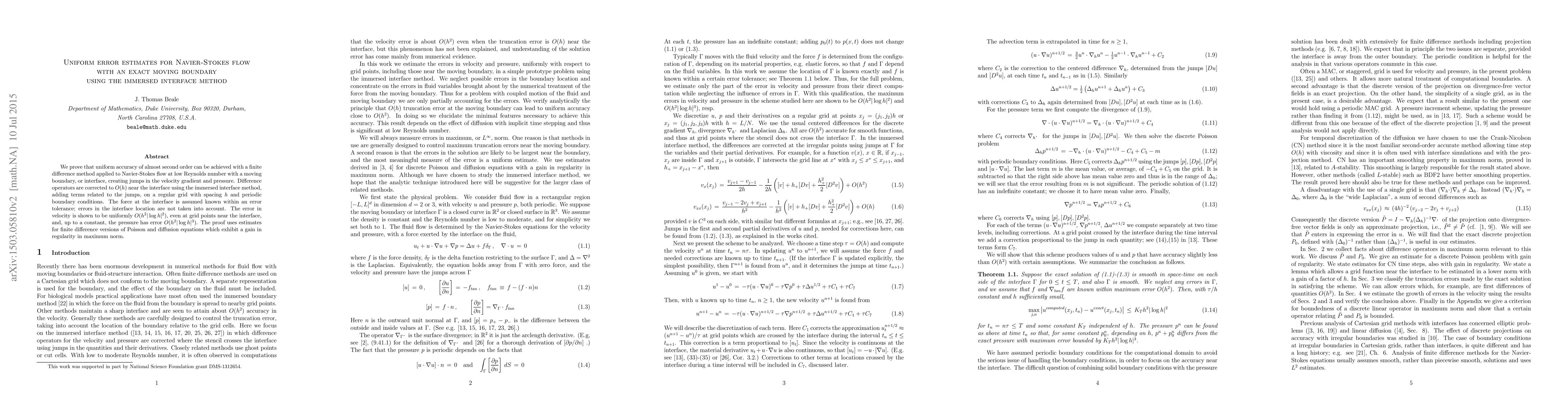 This paper demonstrates that a finite difference method using the immersed interface method can achieve almost second-order uniform accuracy for low Reynolds number Navier-Stokes flow with an exact moving boundary. The method corrects difference operators near the interface to $O(h)$, ensuring uniform $O(h^2|\log{h}|^2)$ velocity error and $O(h^2|\log{h}|^3)$ pressure error, even near the interface.