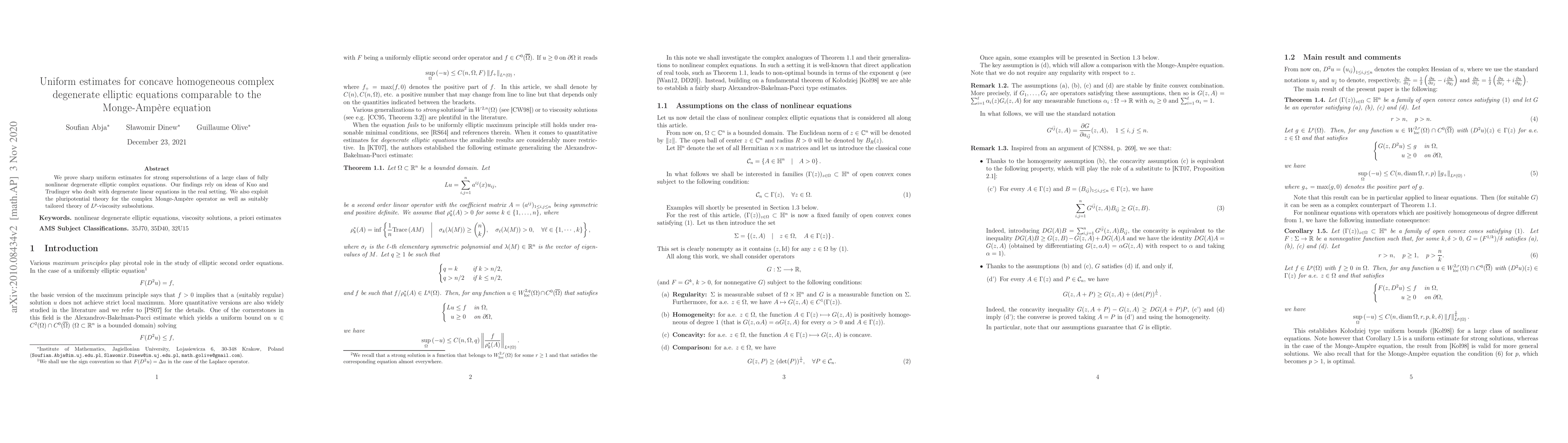 We prove sharp uniform estimates for strong supersolutions of a large class of fully nonlinear degenerate elliptic complex equations. Our findings rely on ideas of Kuo and Trudinger who dealt with degenerate linear equations in the real setting. We also exploit the pluripotential theory for the complex Monge-Amp\`ere operator as well as suitably tailored theory of $L^p$-viscosity subsolutions.
