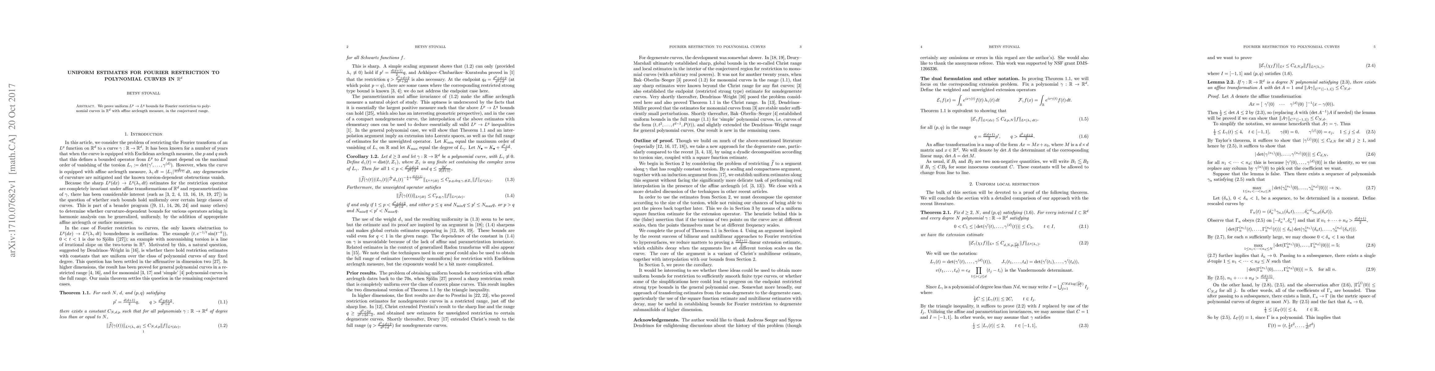 The paper's main technical contribution is the development of a method to obtain uniform $L^p \to L^q$ bounds for Fourier restriction to polynomial curves with affine arclength measure, filling in gaps in the existing literature.