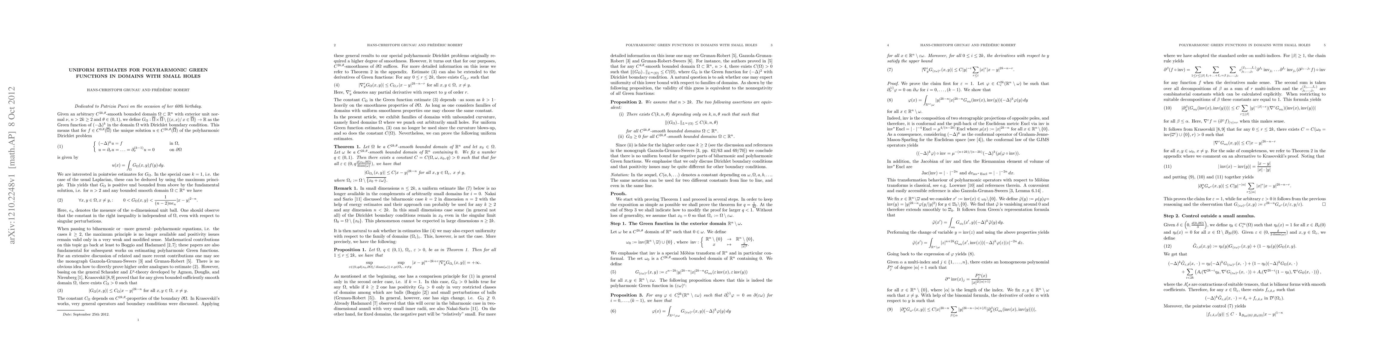 We prove a pointwise control for the Green's function of polyharmonic operators with holes: this control is uniform while holes shrink. For the usual Laplacian, such a control is given by the maximum principle; the techniques developed here applies to general polyharmonic operators for which there is no comparison principle.